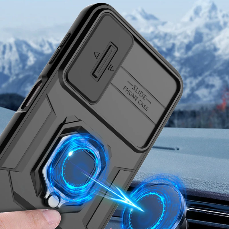 Comprar Funda a prueba de golpes para Samsung Galaxy, protector de lente deslizante, anillo de soporte magnético, A14, A24, A34, A54
