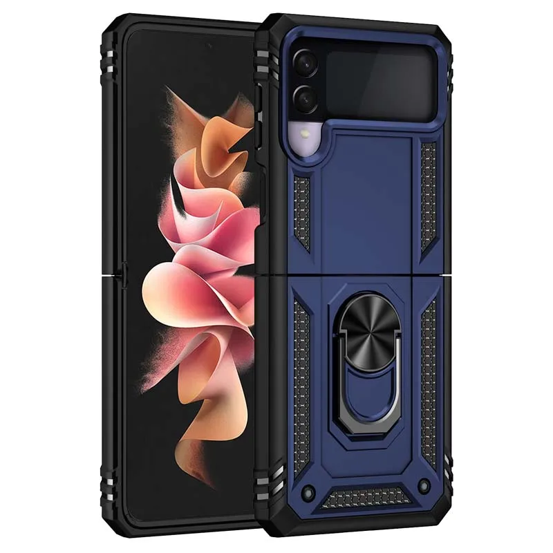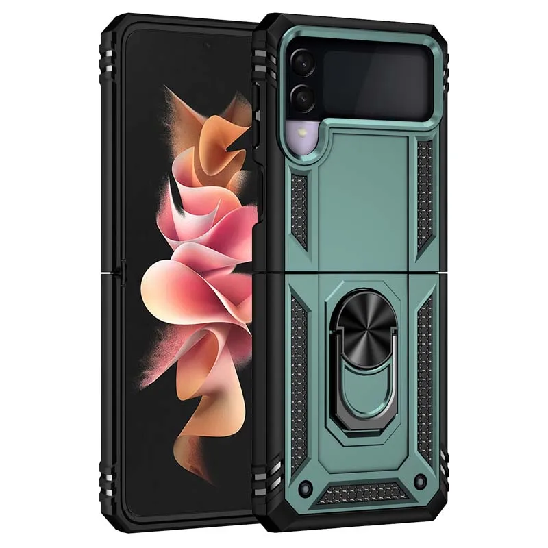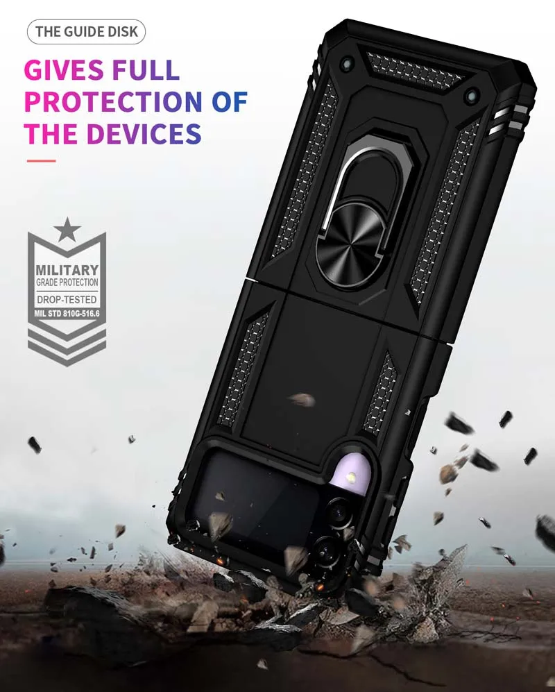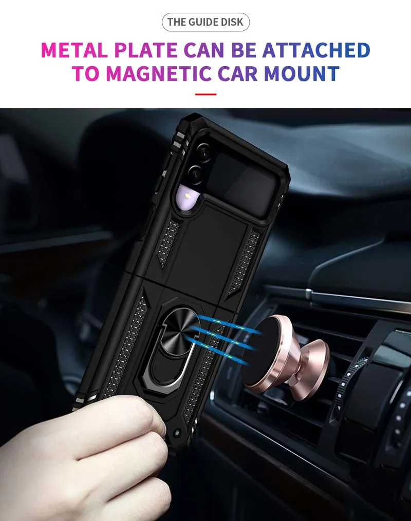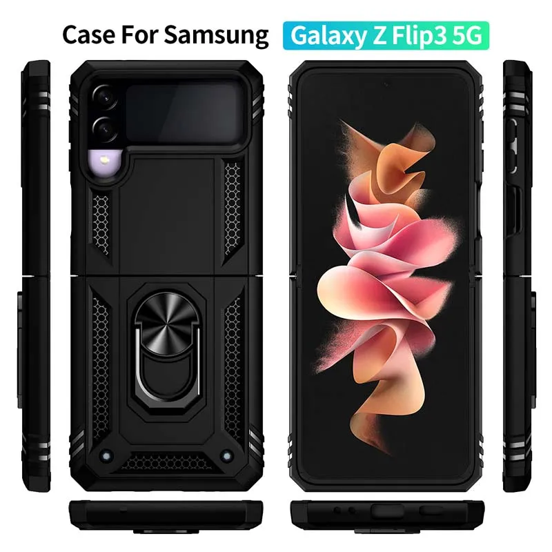 Comprar Funda a prueba de golpes para Samsung Galaxy Z Flip 3, funda de teléfono con anillo de Metal magnético, armadura de soporte para Samsung Z Flip 3, Coque trasero