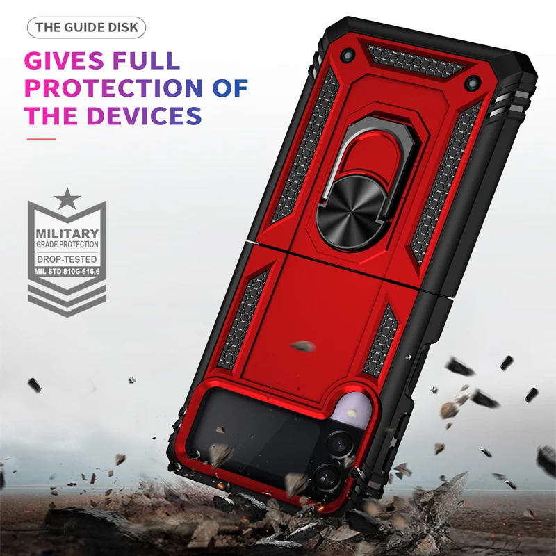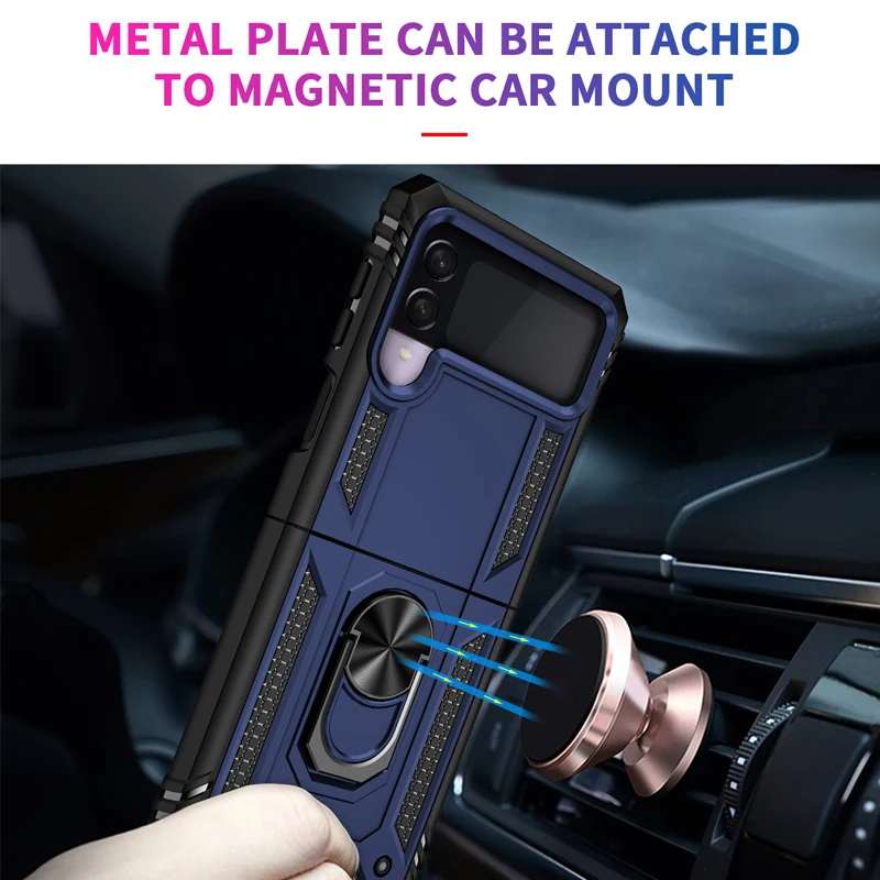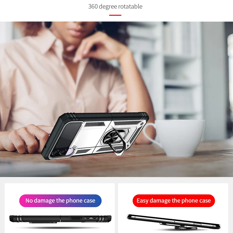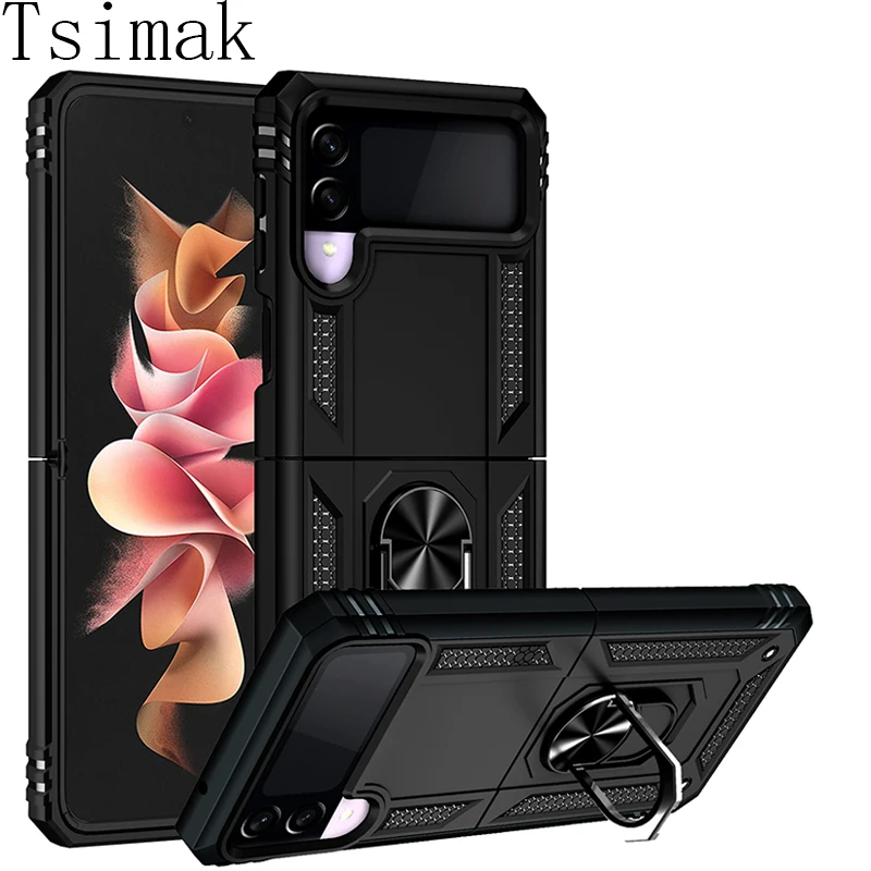 Comprar Funda a prueba de golpes para Samsung Galaxy Z Flip 3, funda de teléfono con anillo de Metal magnético, armadura de soporte para Samsung Z Flip 3, Coque trasero
