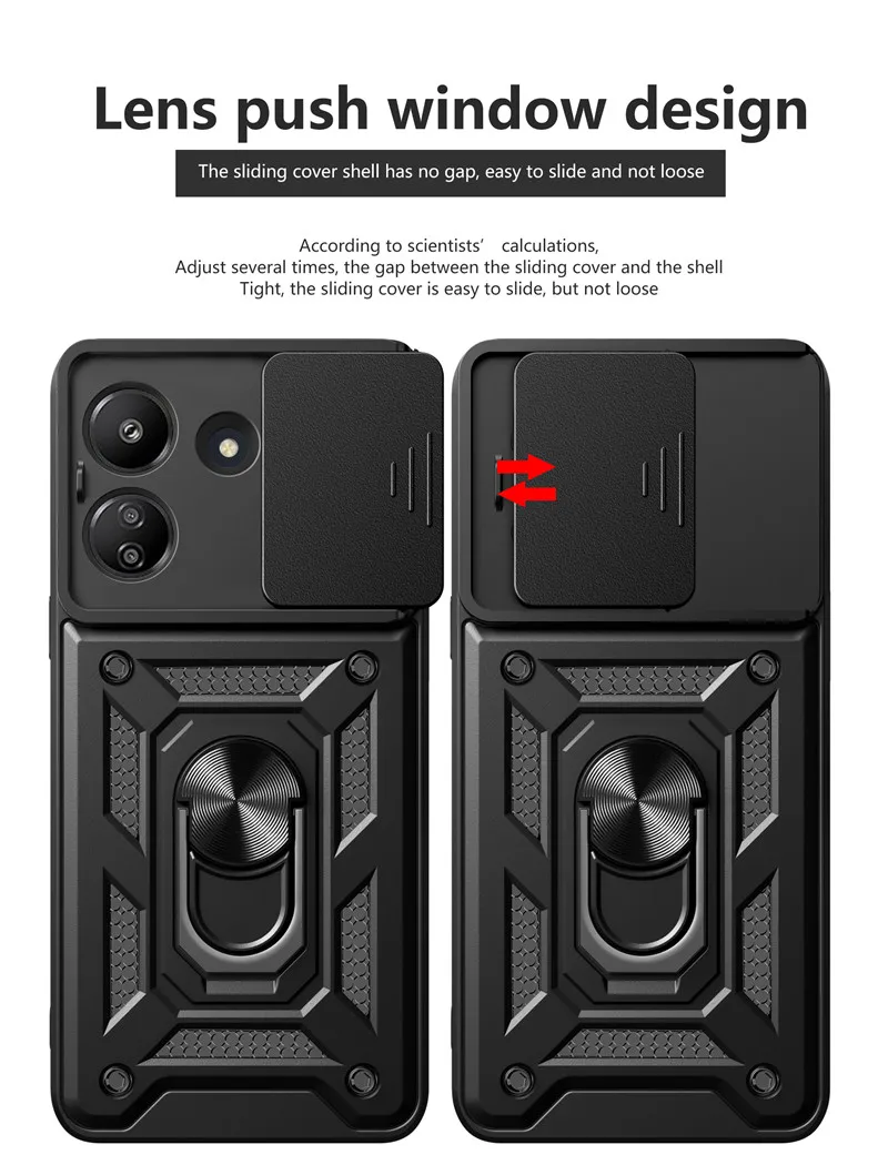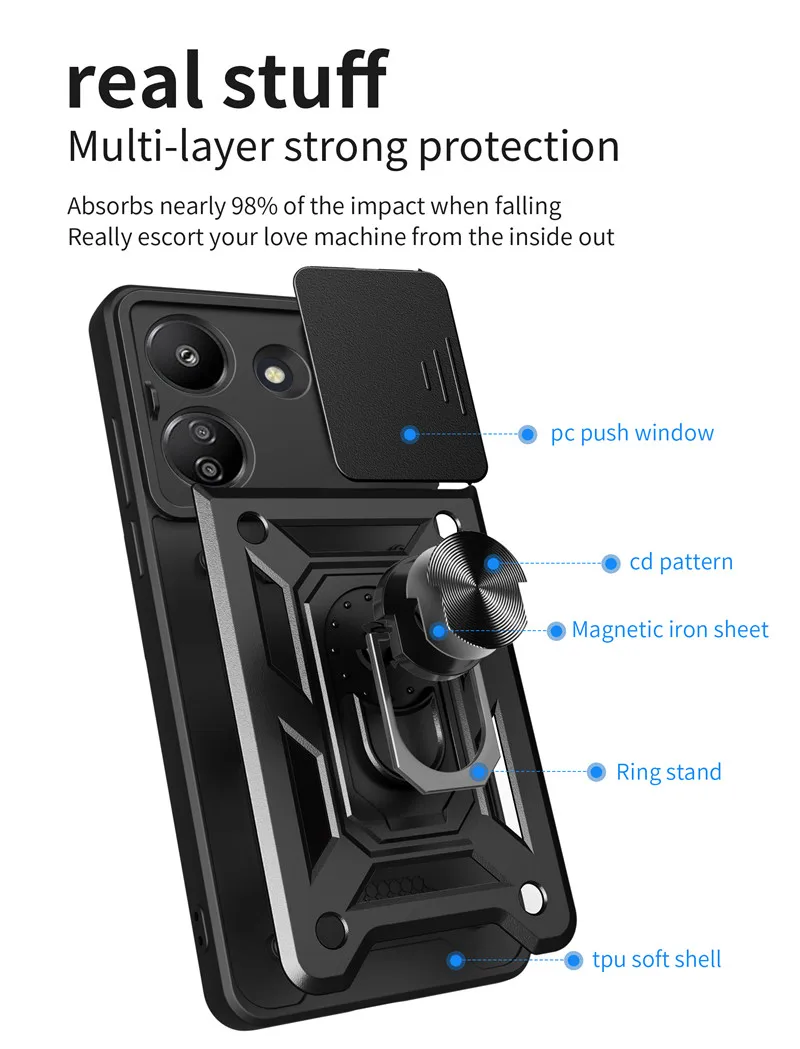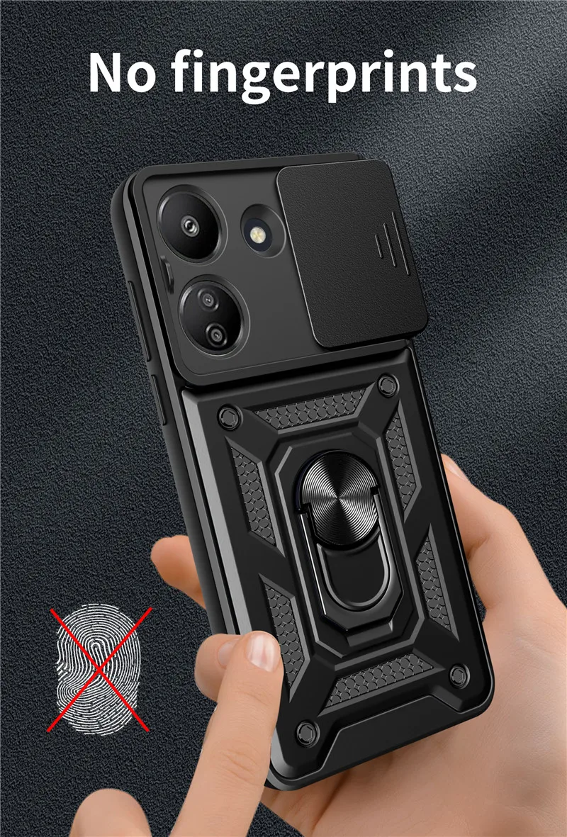 Comprar Funda a prueba de golpes con soporte de anillo magnético para Xiaomi Redmi, 9A, 9C, 10, 10A, 10C, cubierta de cámara deslizante para Redmi 11A, 12, 12C, 13, 13C
