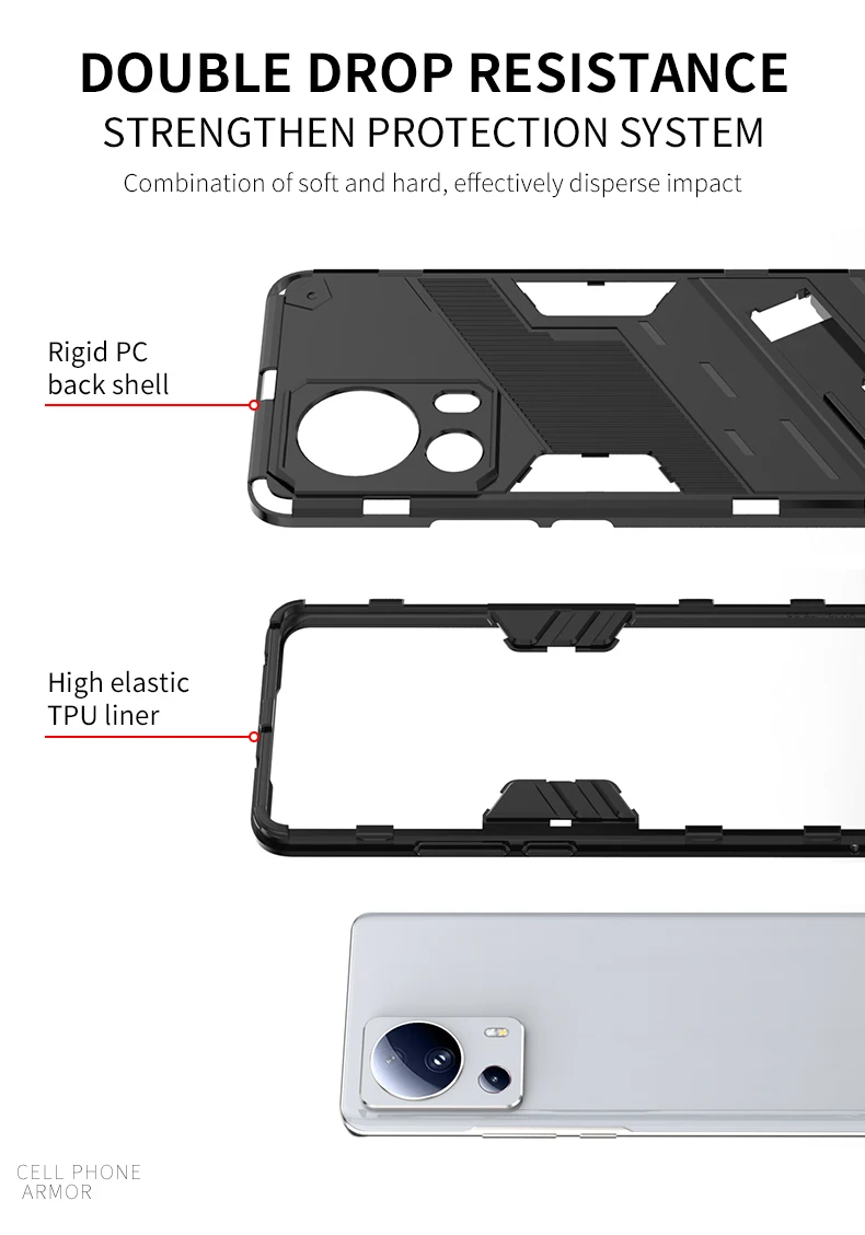 Comprar Funda a prueba de golpes para Xiaomi 13 Lite 13T Pro Mi13, funda protectora con soporte trasero para Redmi 13C Note 13 Pro 4G 5G
