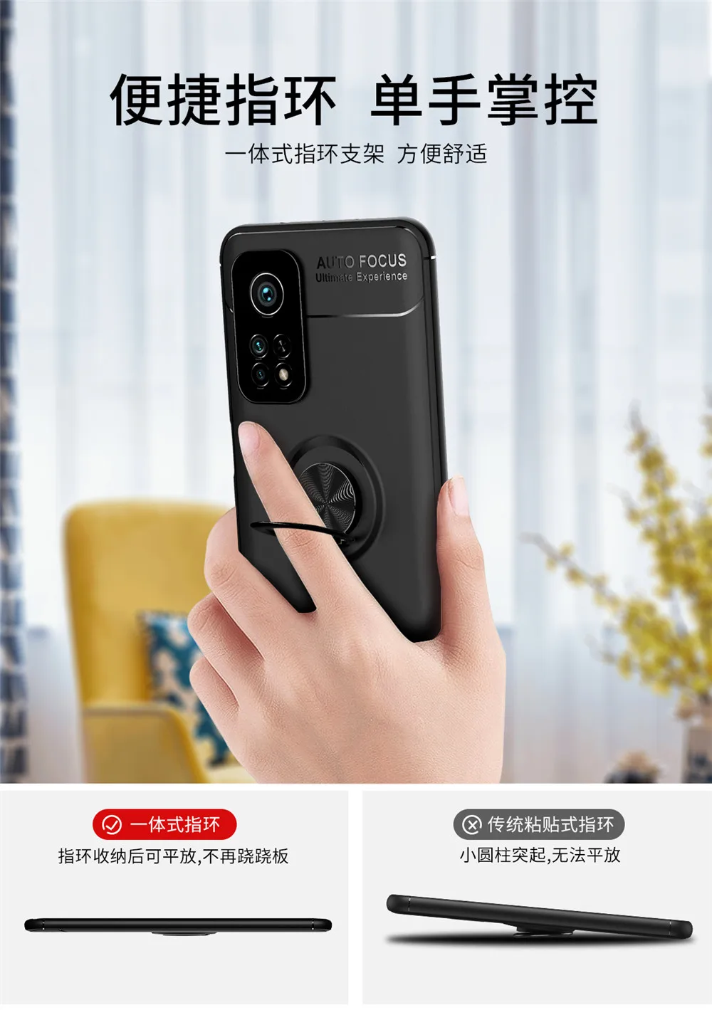 Comprar Funda a prueba de golpes para Xiaomi Mi 10T Pro, carcasa con soporte de anillo magnético de silicona suave para Mi 10T Lite, 5G