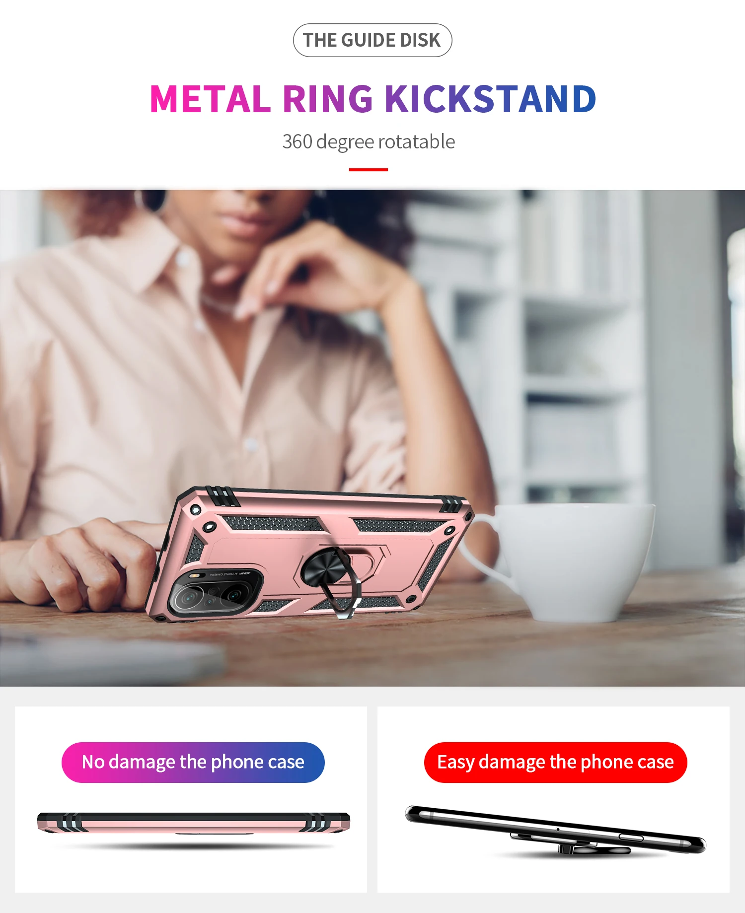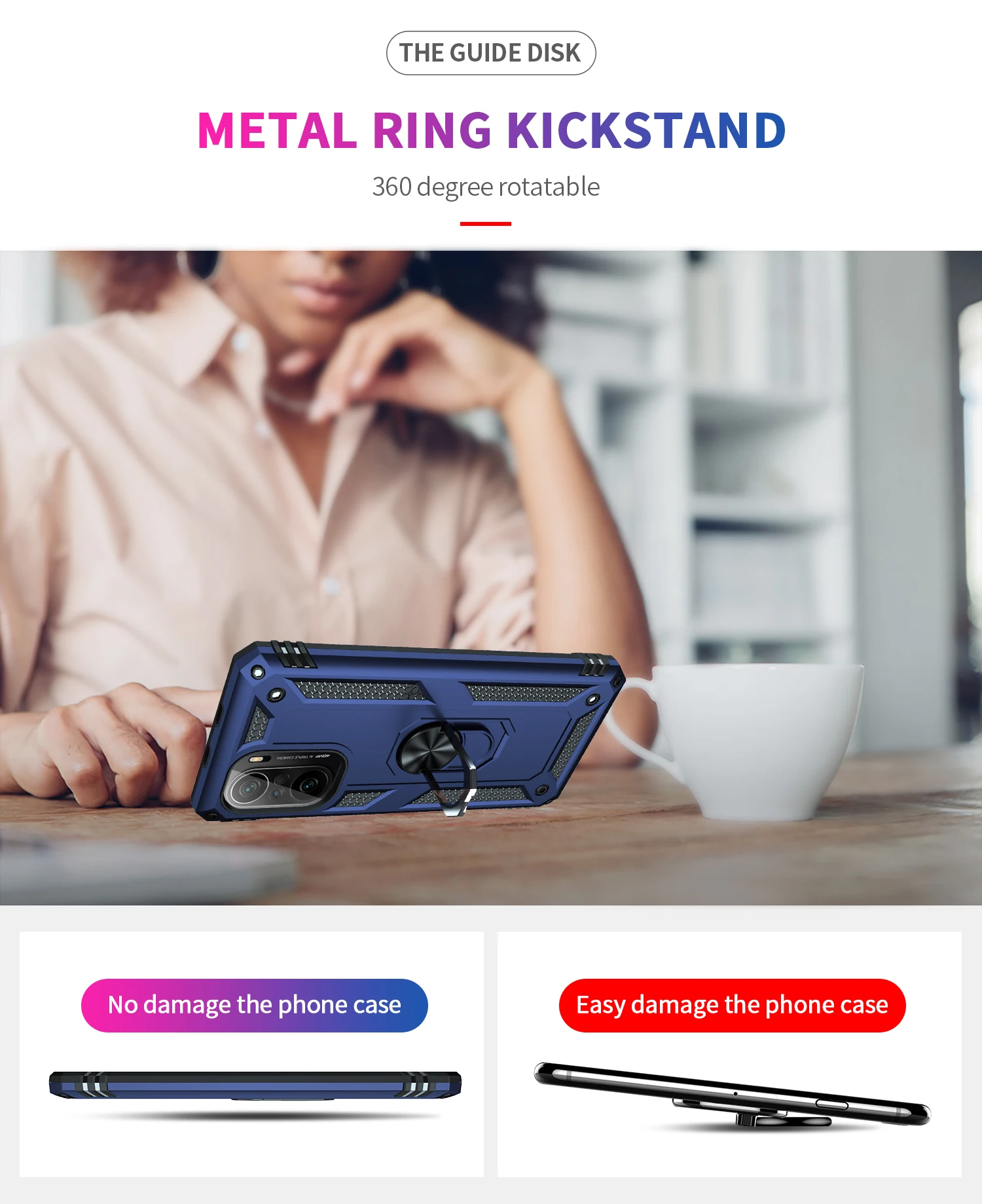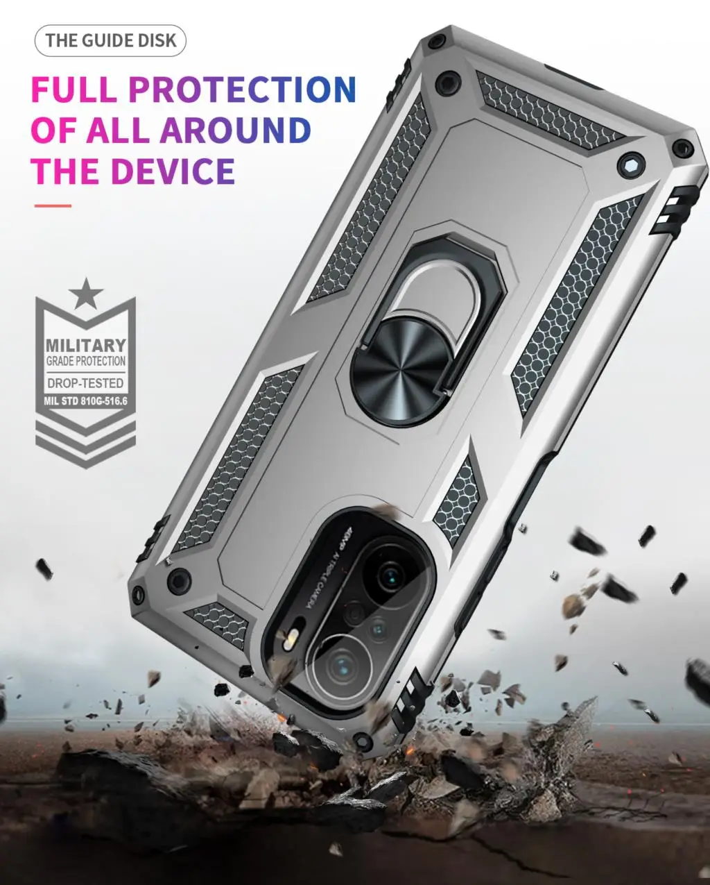 Comprar Funda a prueba de golpes para Xiaomi Mi 11i Mi11i, Funda protectora militar resistente con imán, anillo de soporte para coche