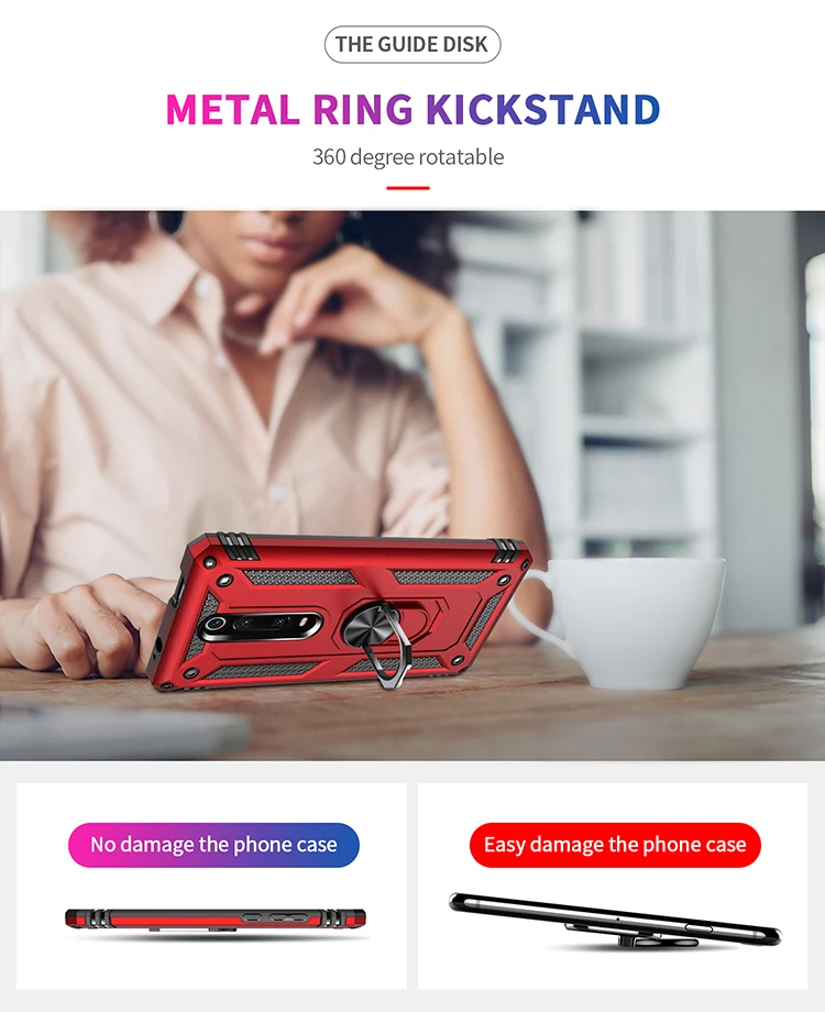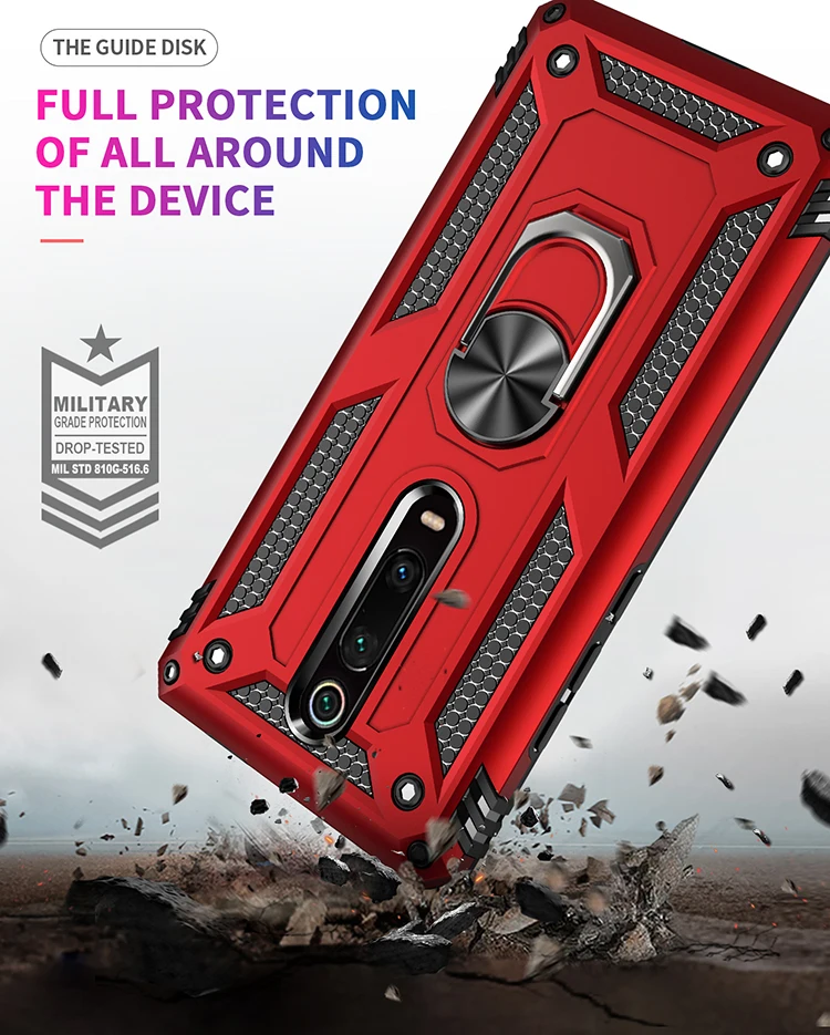 Comprar Funda a prueba de golpes para Xiaomi Mi 9 T pro, carcasa protectora militar para coche, anillo, soporte