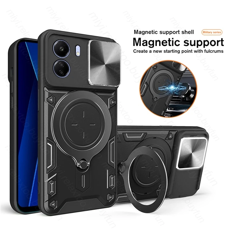 Armadura a prueba de golpes Coque para Xiaomi Poco C65 PocoC65 C 65 4G Funda con soporte magnético Anillo Push Pull Cámara Proteger Funda Redmi 13C 13 C