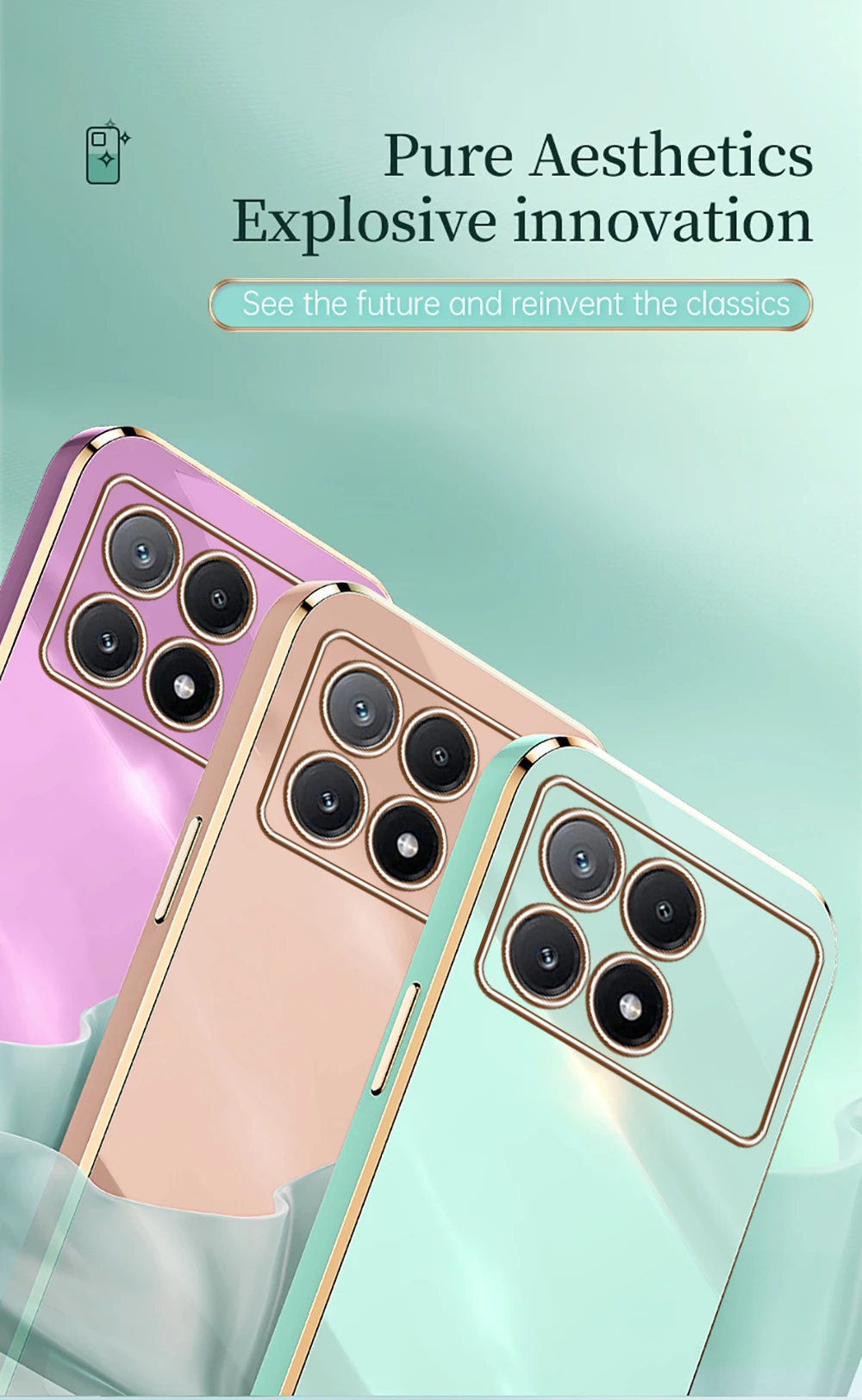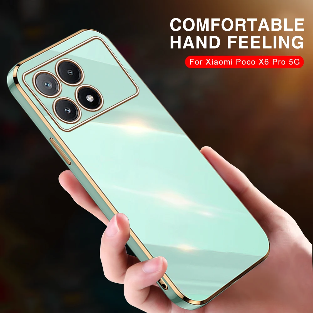 Para Xiaomi Poco X6 Pro funda chapada suave borde recto parachoques cuadrado Pocco Little X6Pro X 6 6X PocoX6 5G cubierta a prueba de golpes Capas