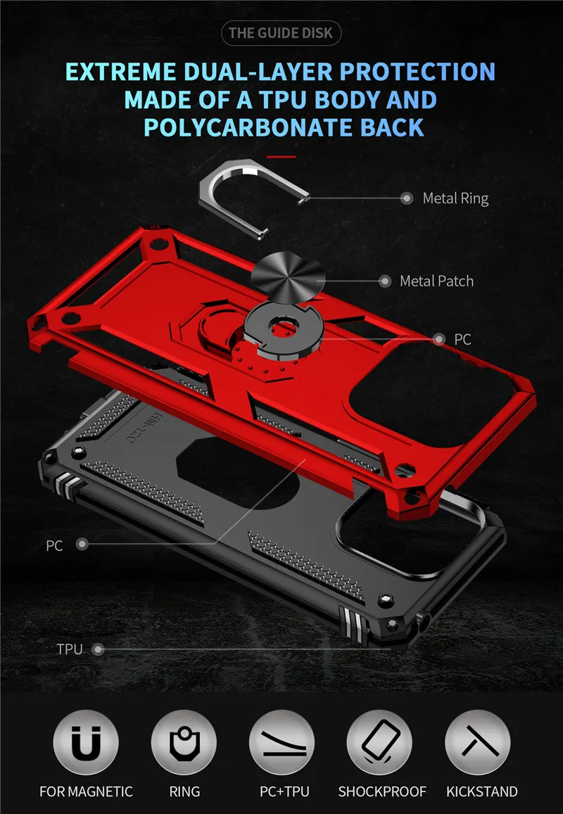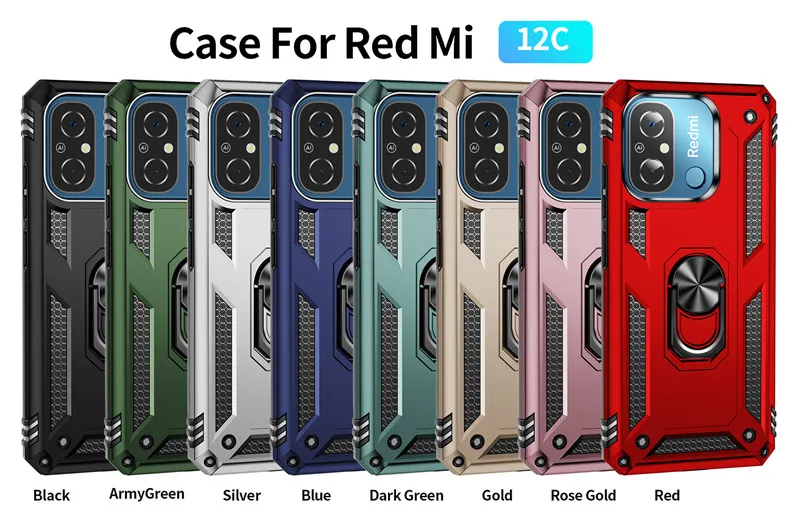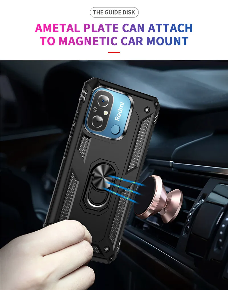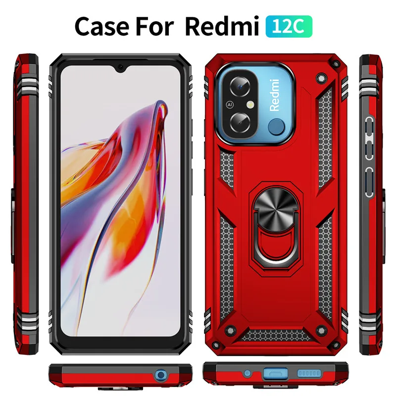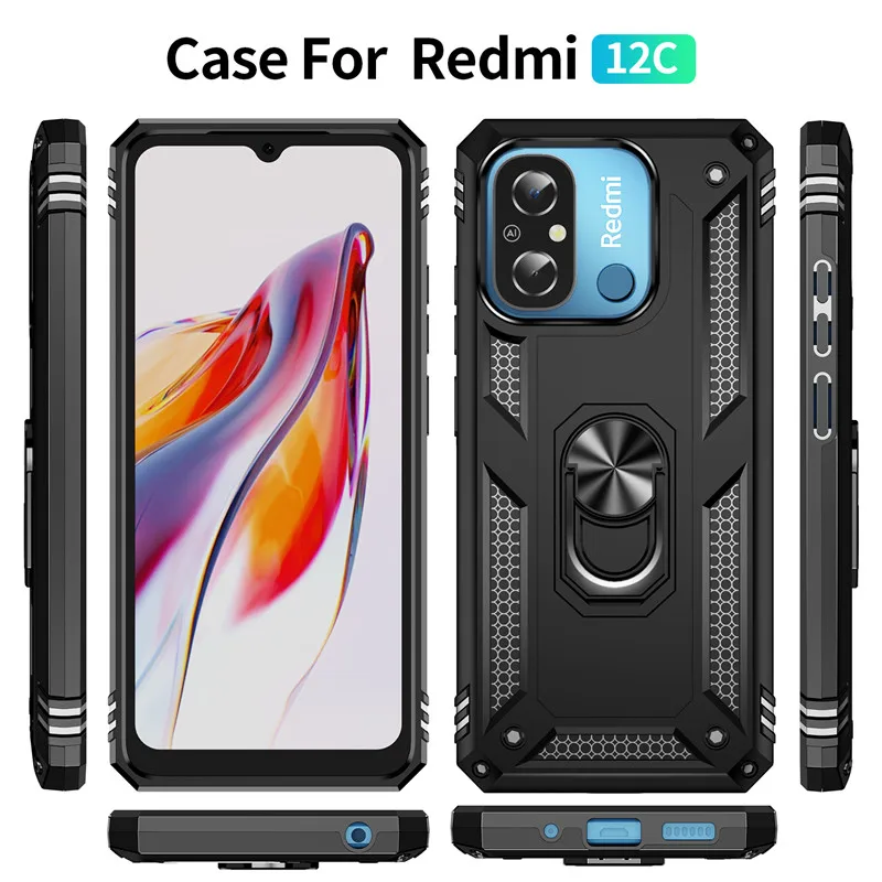 Comprar Funda a prueba de golpes para Xiaomi Redmi 12C, carcasa trasera con anillo de soporte magnético para coche