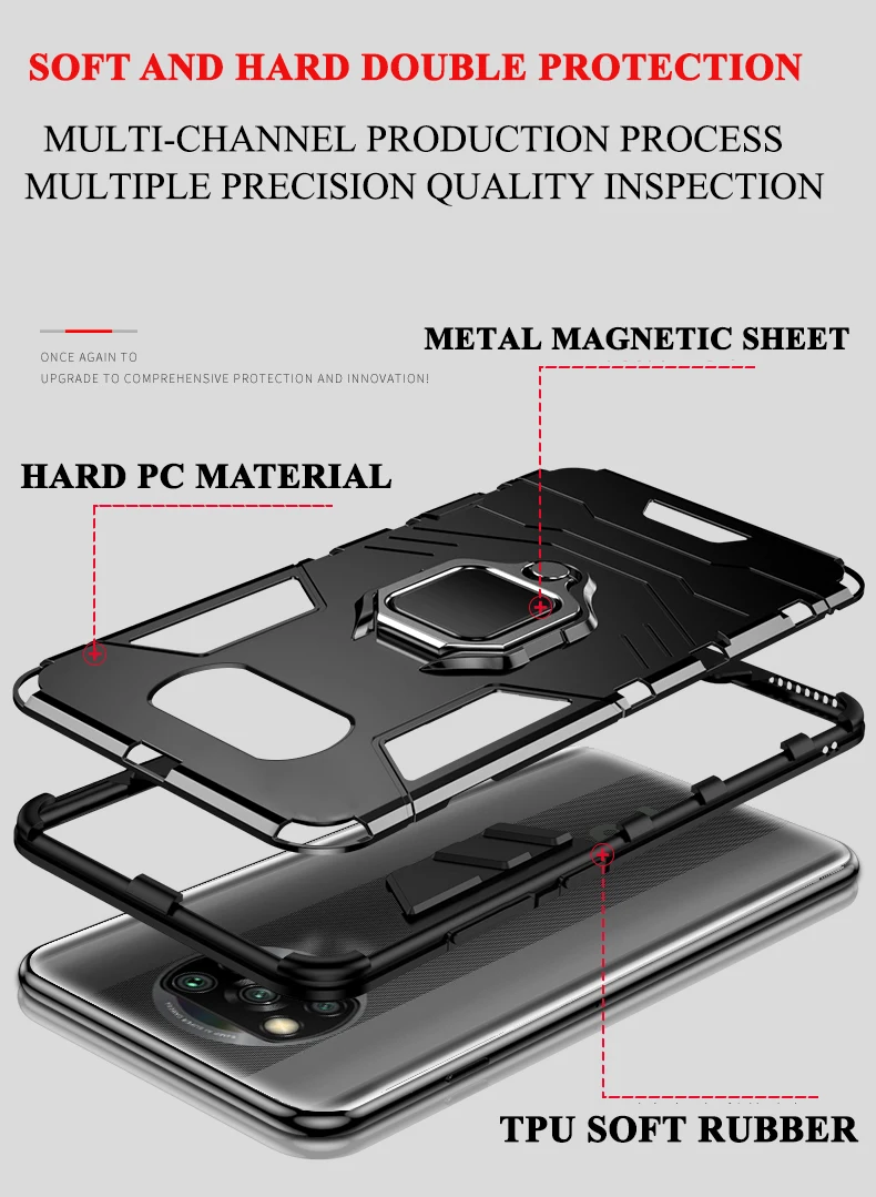 Comprar Funda a prueba de golpes para Xiaomi Redmi Note 10 11 12 10S 11S 12S Poco X3 X4 X5 Pro M4 M5 M5S F3 F4 GT 4G 5G funda trasera para teléfono con soporte