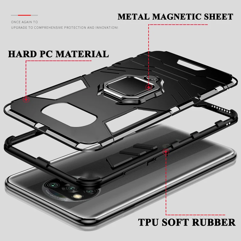 Comprar Funda a prueba de golpes para Xiaomi Redmi Note 10 11 12 10S 11S 12S Poco X3 X4 X5 Pro M4 M5 M5S F3 F4 GT 4G 5G funda trasera para teléfono con soporte