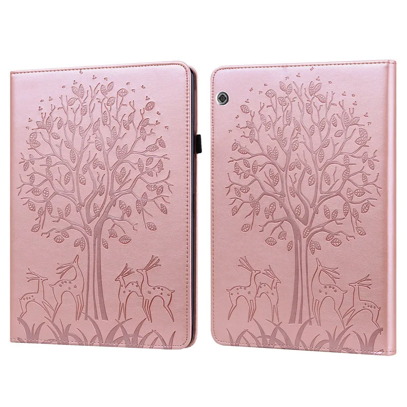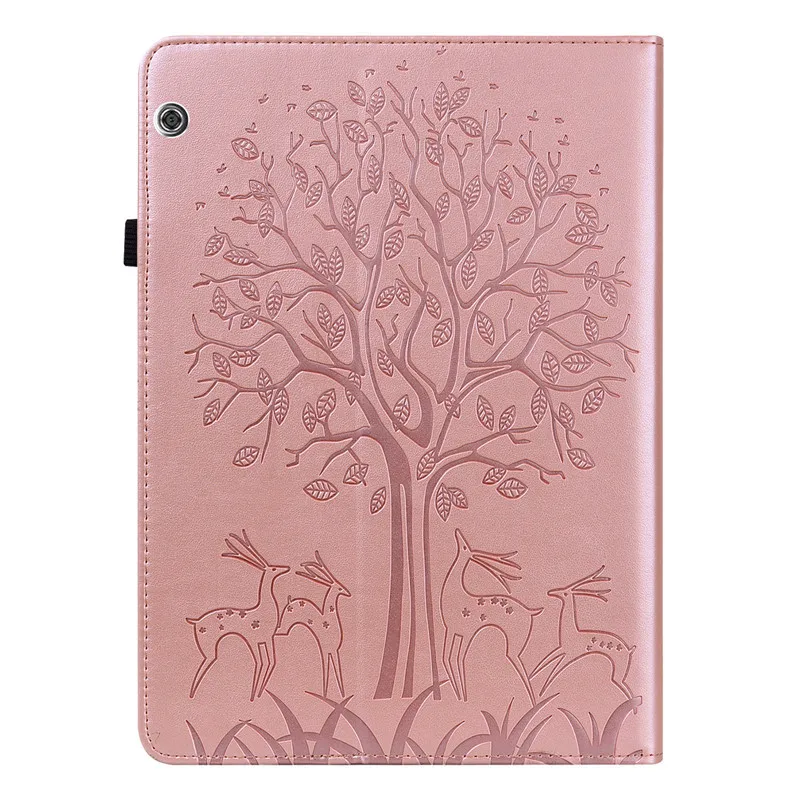 Funda con tapa de ciervo de árbol en relieve para Funda Huawei Mediapad T5 Funda de cartera de 10,1 "para Huawei Mediapad T5 10 Funda para tableta de 1 pulgada