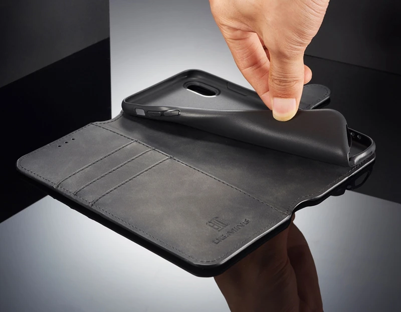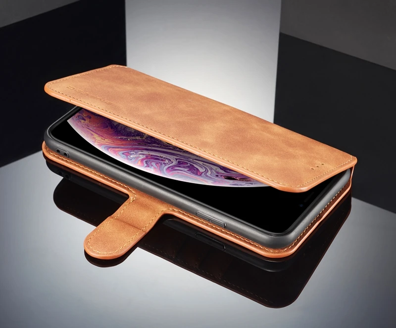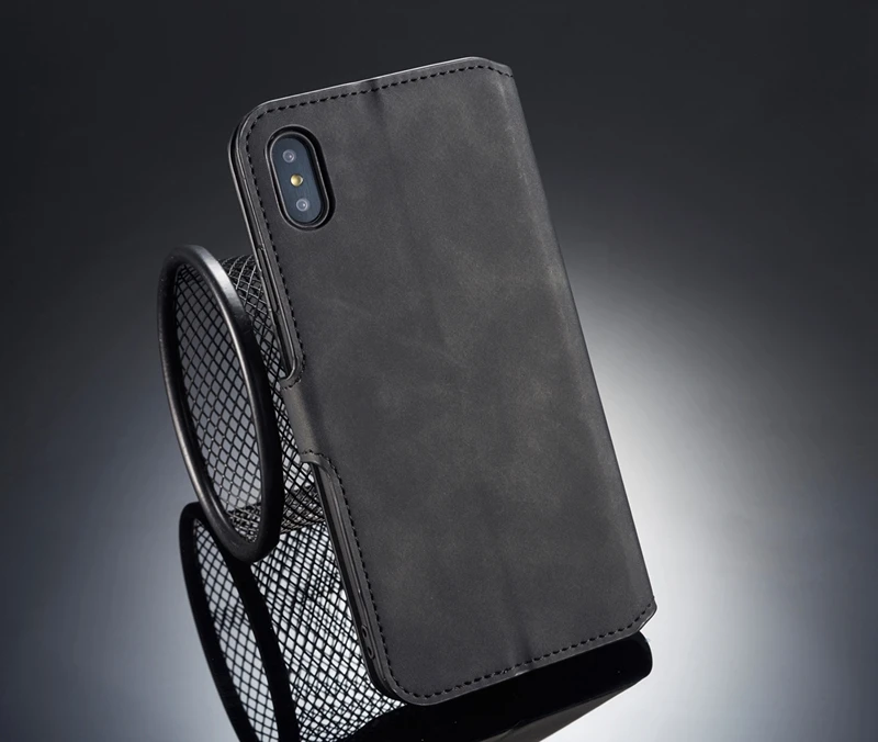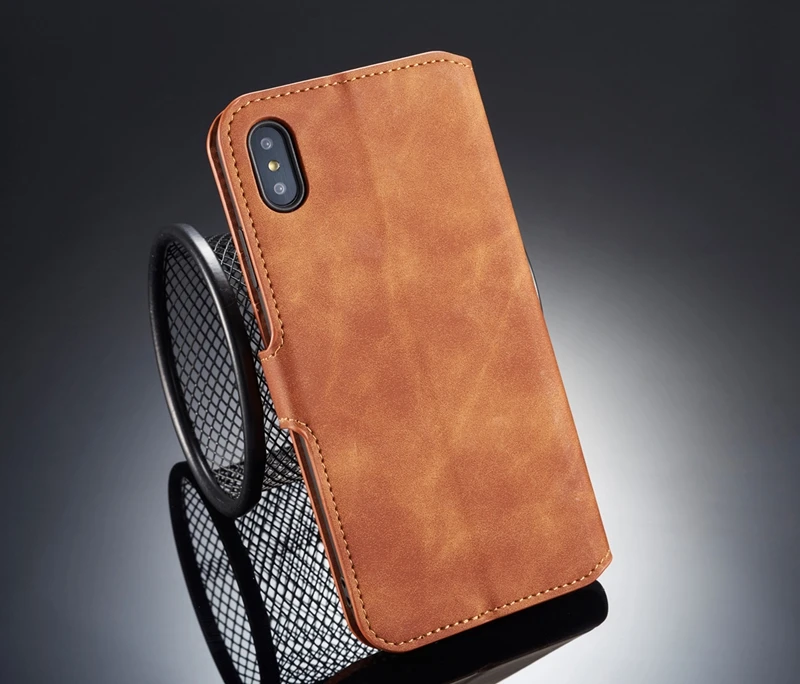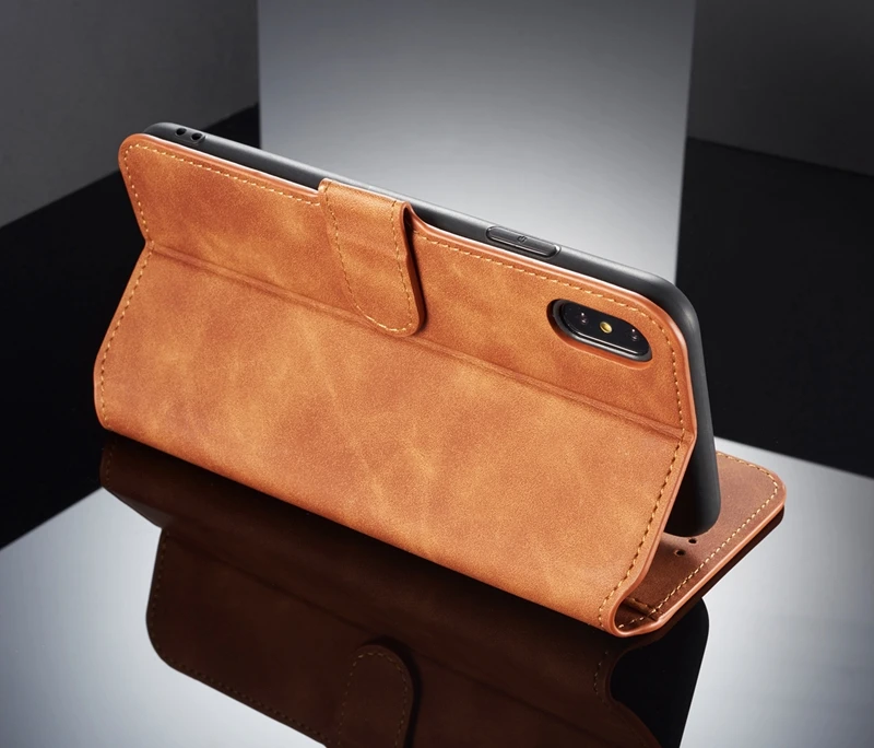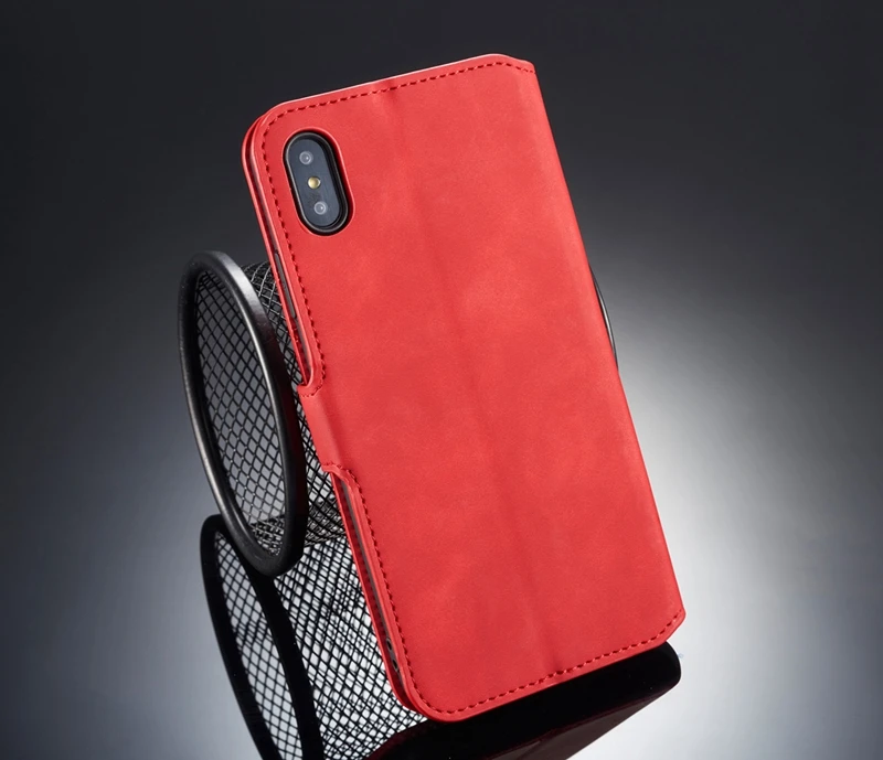Comprar Funda abatible para iPhone 6 6s Plus 7 8 Plus, funda Retro de piel sintética, funda tipo billetera para iPhone X XS MAX XR, funda con soporte con ranuras para tarjetas