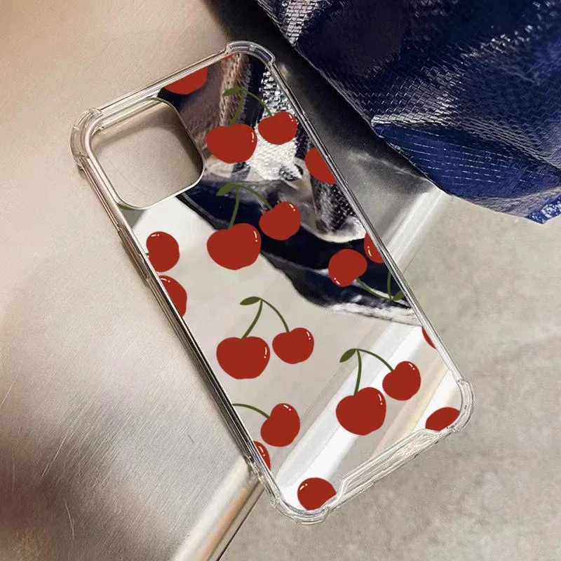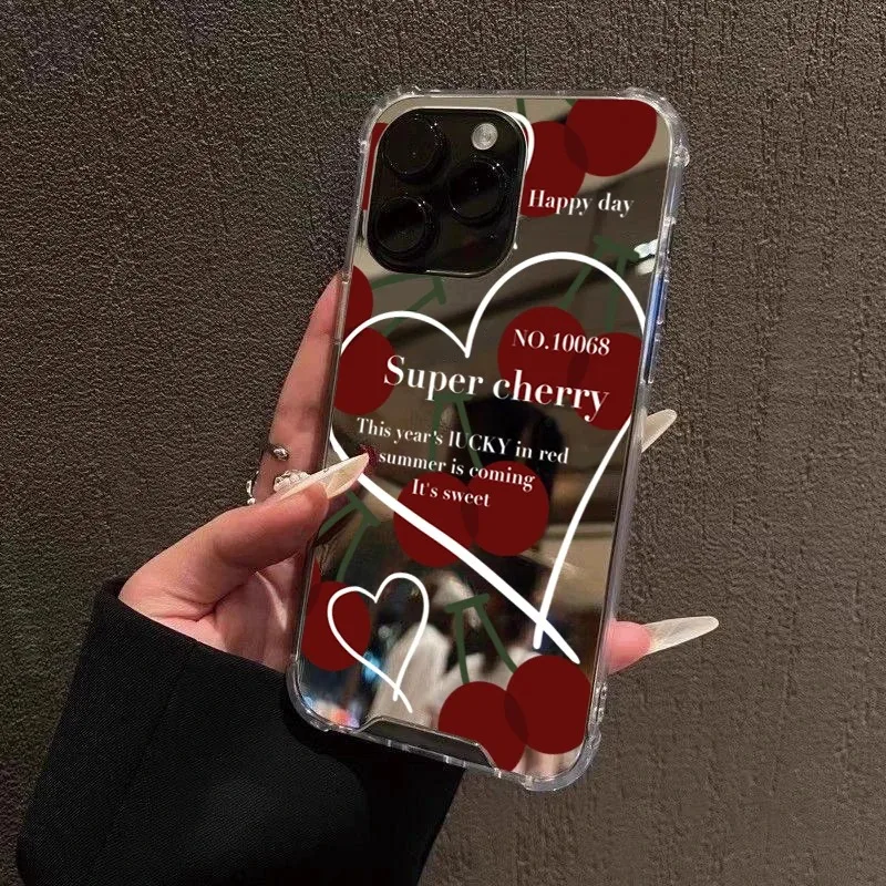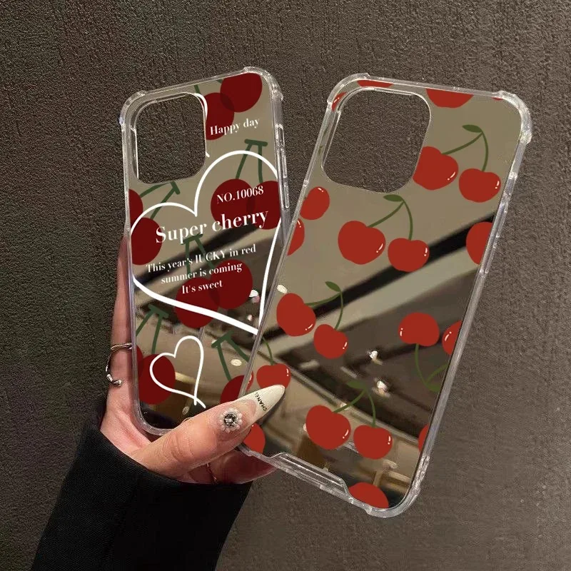 Funda acrílica con espejo y patrón cereza roja para Samsung Galaxy A06 A14 A23 A36 A52 A55 A56 S25 S24 S23 S22 S21 Ultra Plus funda FE