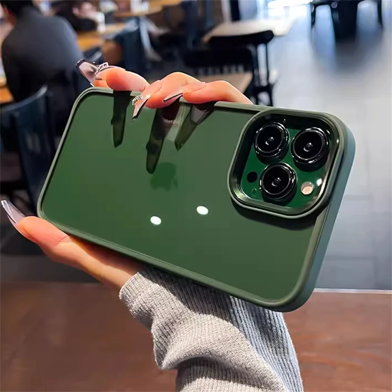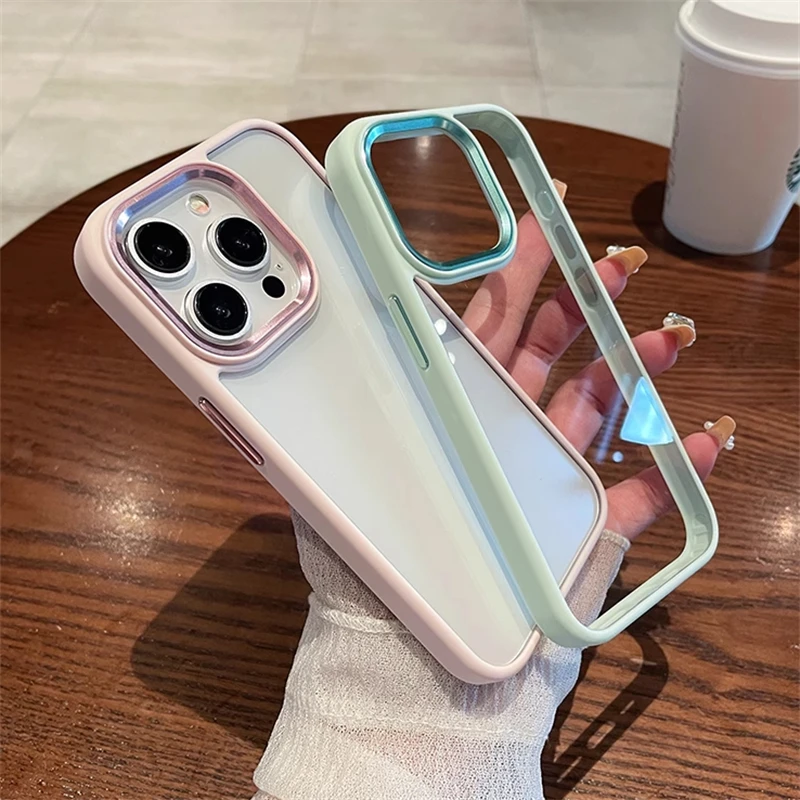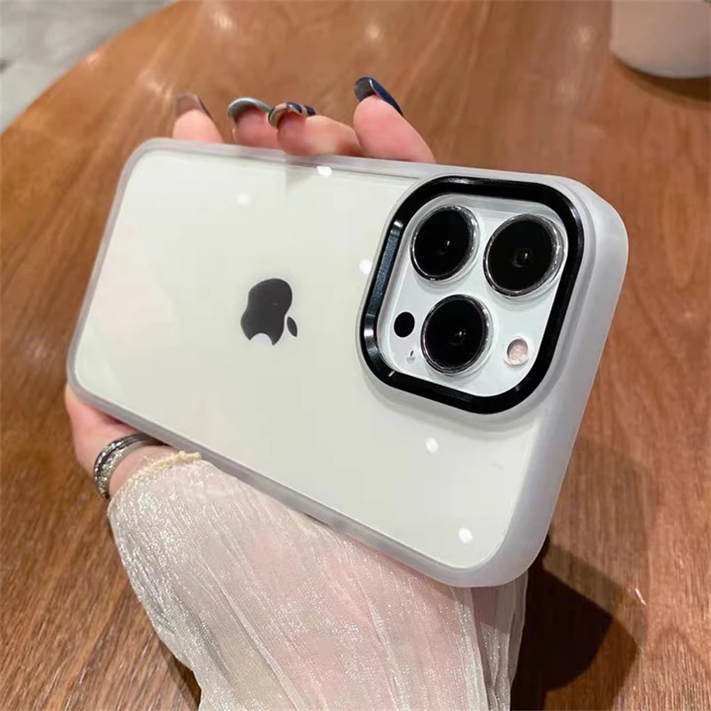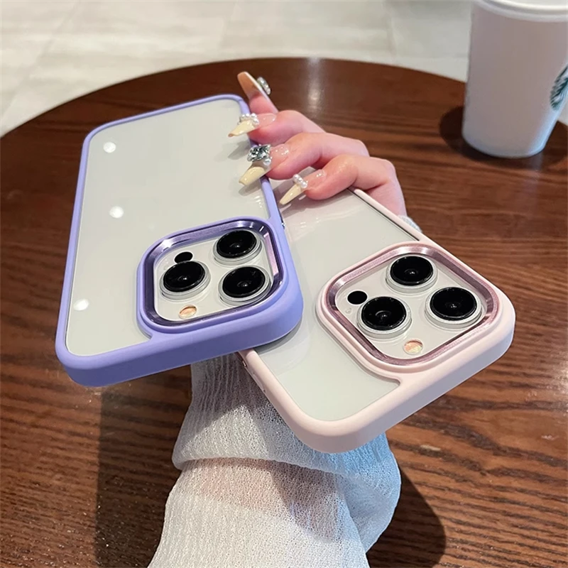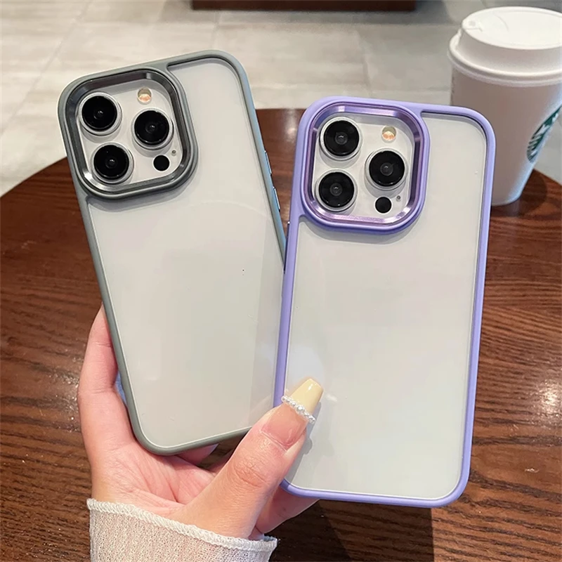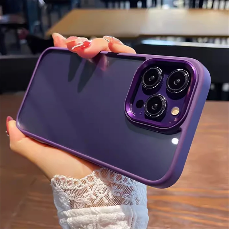 Funda acrílica dura híbrida suave de lujo para iPhone 15 14 13 12 11 Pro Max, anillo de lente de Metal, armadura a prueba de golpes, cubierta transparente