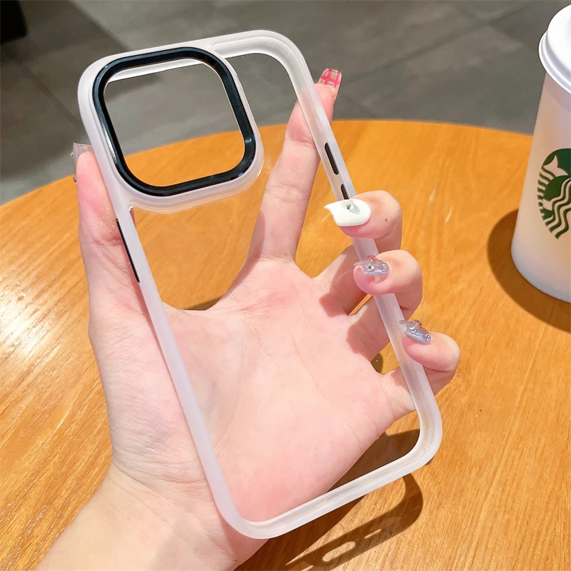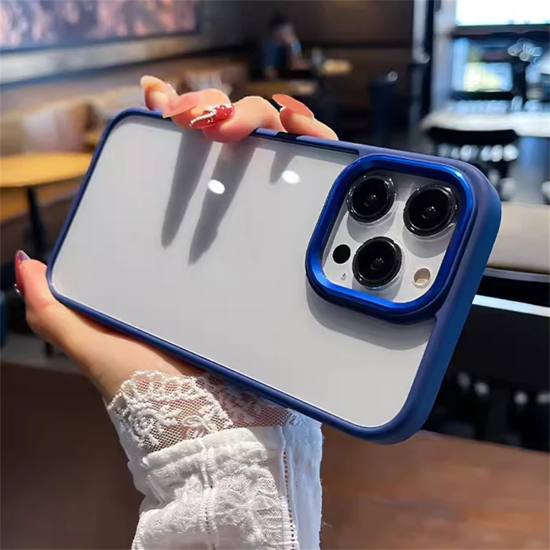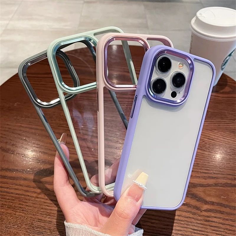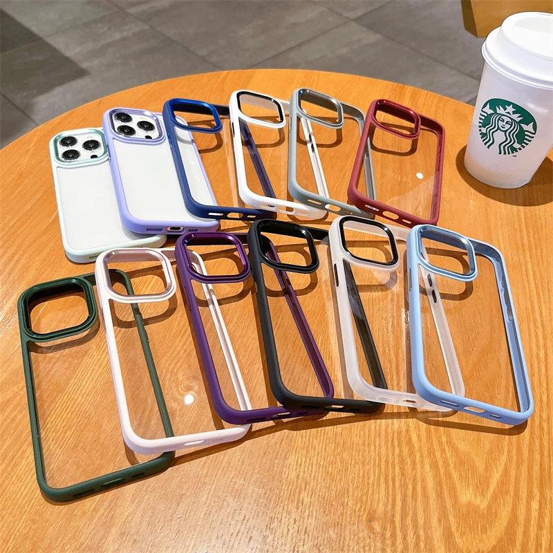 Funda acrílica dura de parachoques suave híbrido de lujo para iPhone 15 14 13 12 11 Pro Max anillo de lente de Metal armadura a prueba de golpes cubierta transparente