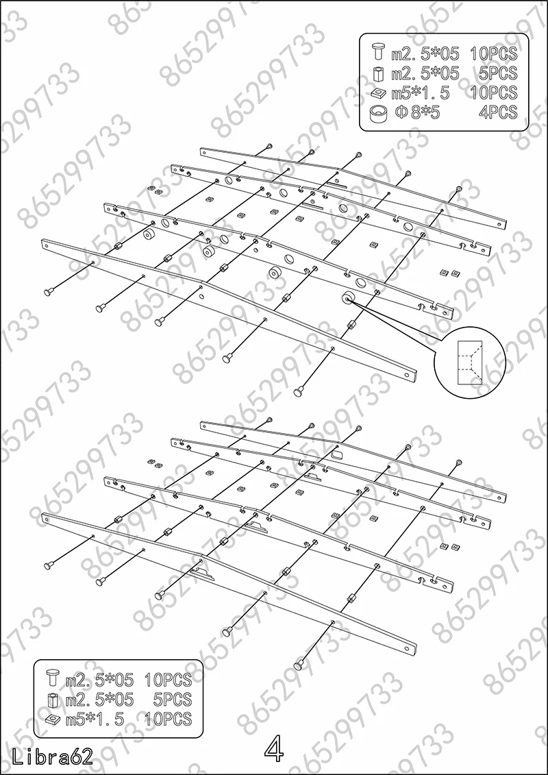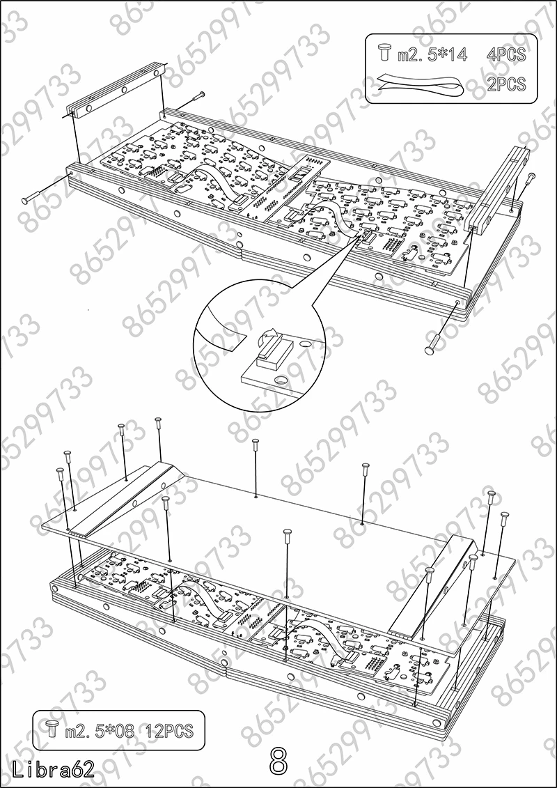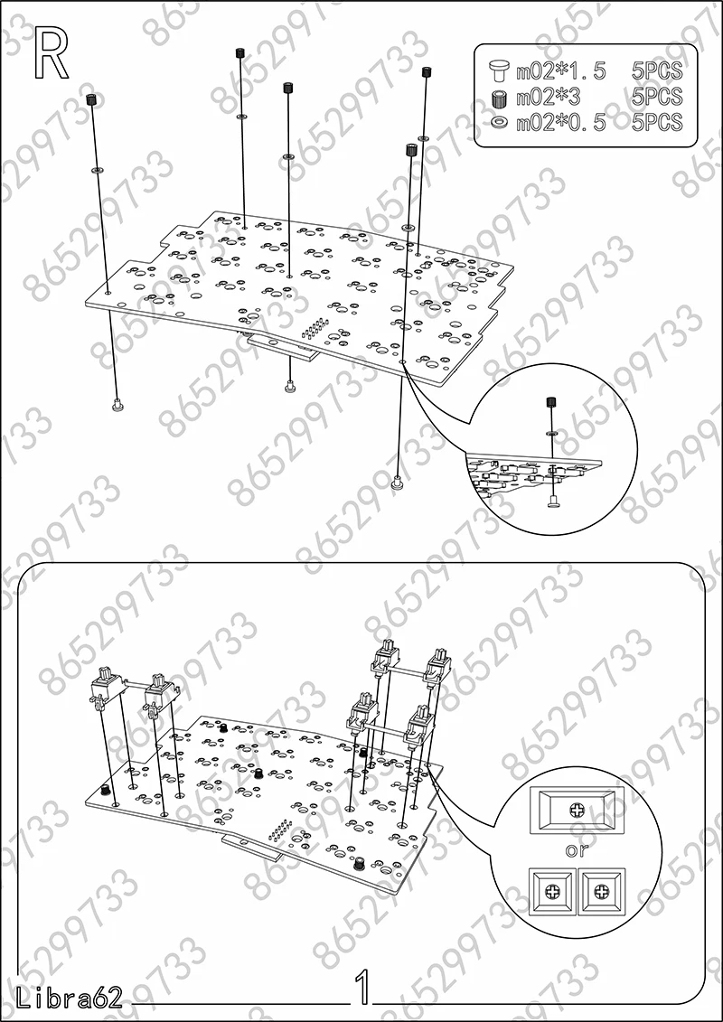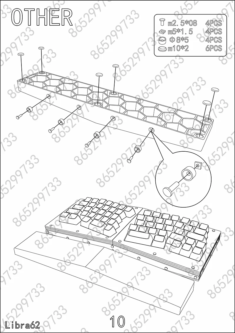 Libra mini: Carcasa apilada de acrílico, placa de metal, PCB dividido, arreglo de cables, varios tornillos, almohadilla de pie de silicona