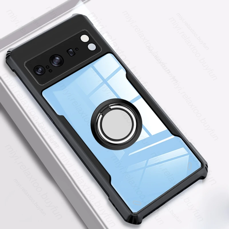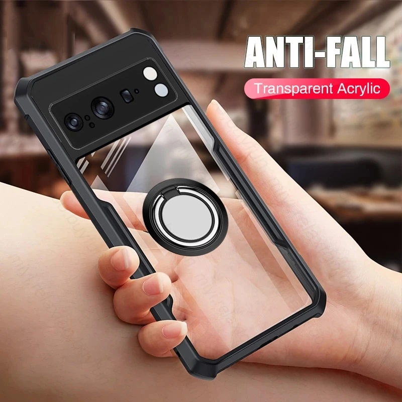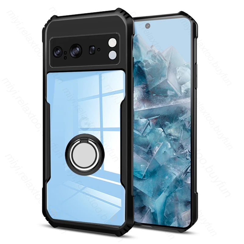 Comprar Funda de acrílico transparente para móvil, carcasa trasera de TPU con borde suave para Google Pixel8 Pixel 8 Pro Pixle 8Pro, anillo protector con soporte magnético
