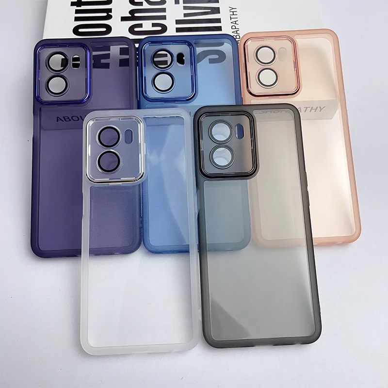 Comprar Funda de acrílico transparente con Protector de lente para OPPO Realme, V23, V23i, Q5i, 5G, carcasa trasera de silicona suave con marco de cámara