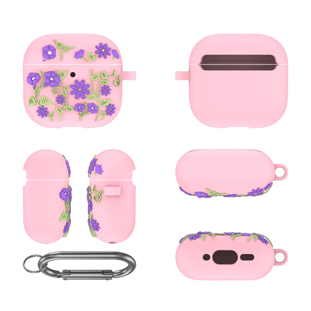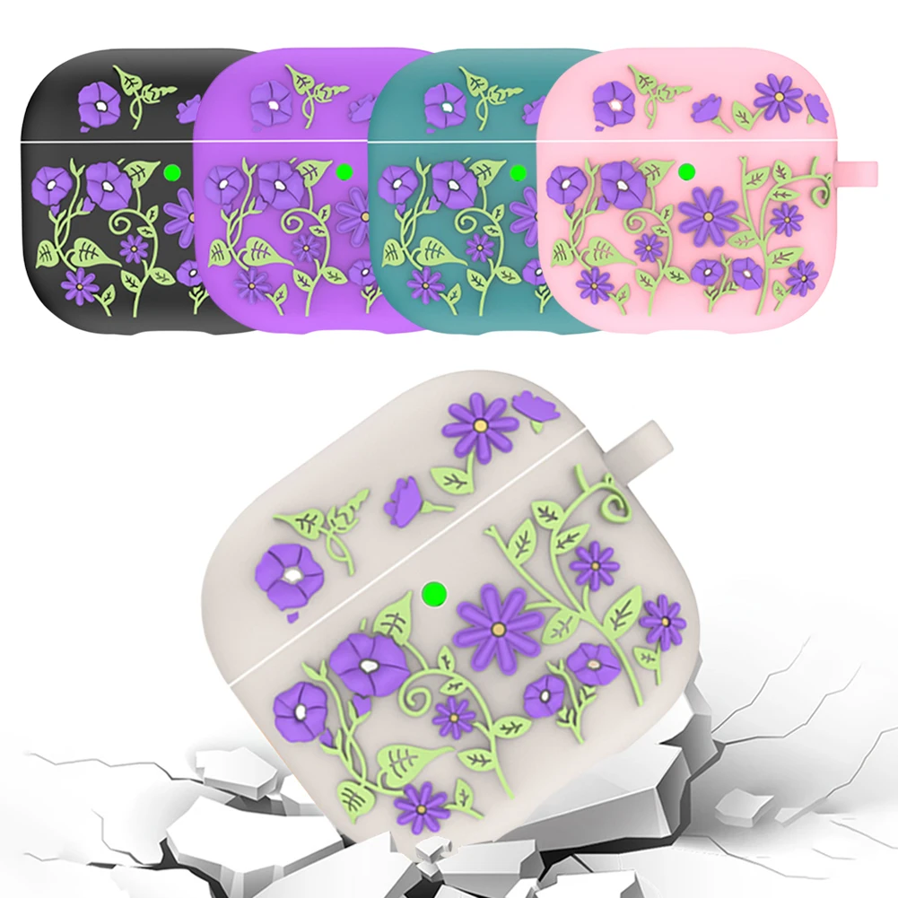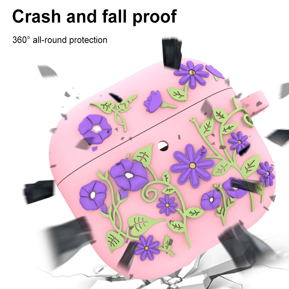 Compatible conFunda AirPods de 4a generación 2024, funda de silicona con flores grabadas y llavero, funda protectora completa para auriculares con carga, funda para auriculares a prueba de golpes, protección contra caídasCompatible conEstuche de carga Airpod de cuarta generación 2024