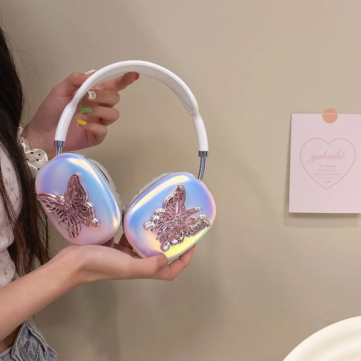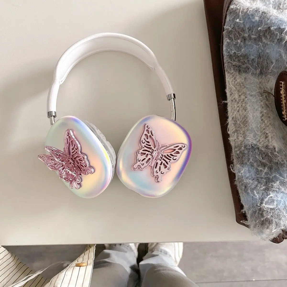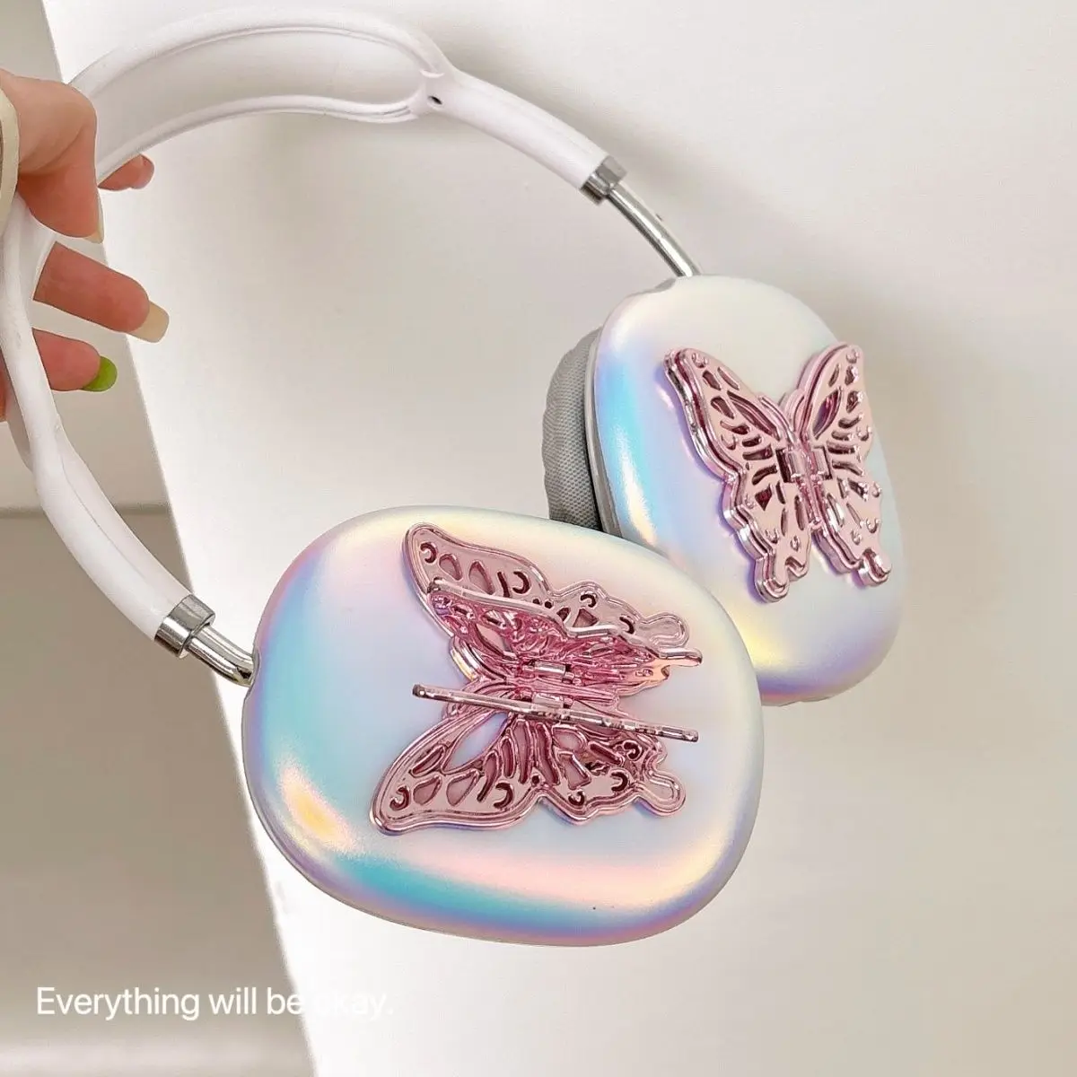 Airpods Max Case Laser Dazzling 3D Pink Butterfly IND Protector de auriculares Custom Niche Auriculares Case Artisan Regalos personalizados