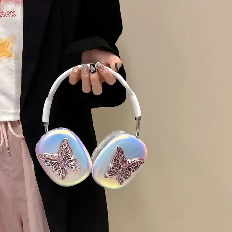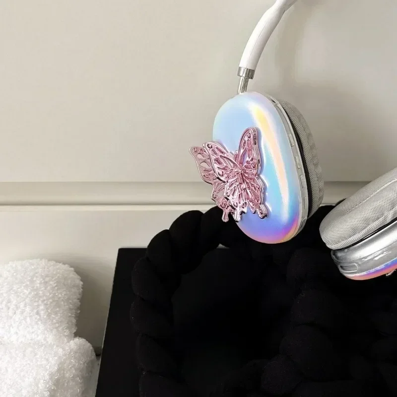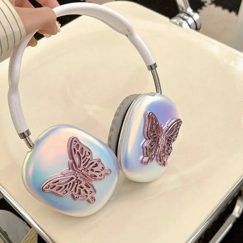 Airpods Max Case Laser Dazzling 3D Pink Butterfly IND Protector de auriculares Custom Niche Auriculares Case Artisan Regalos personalizados