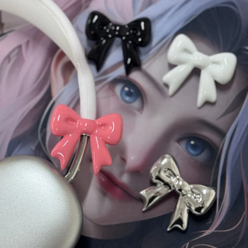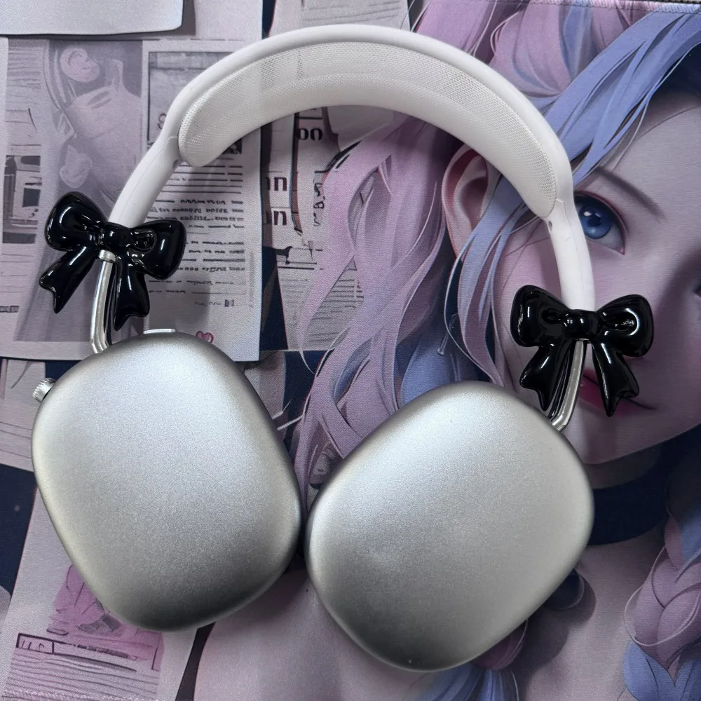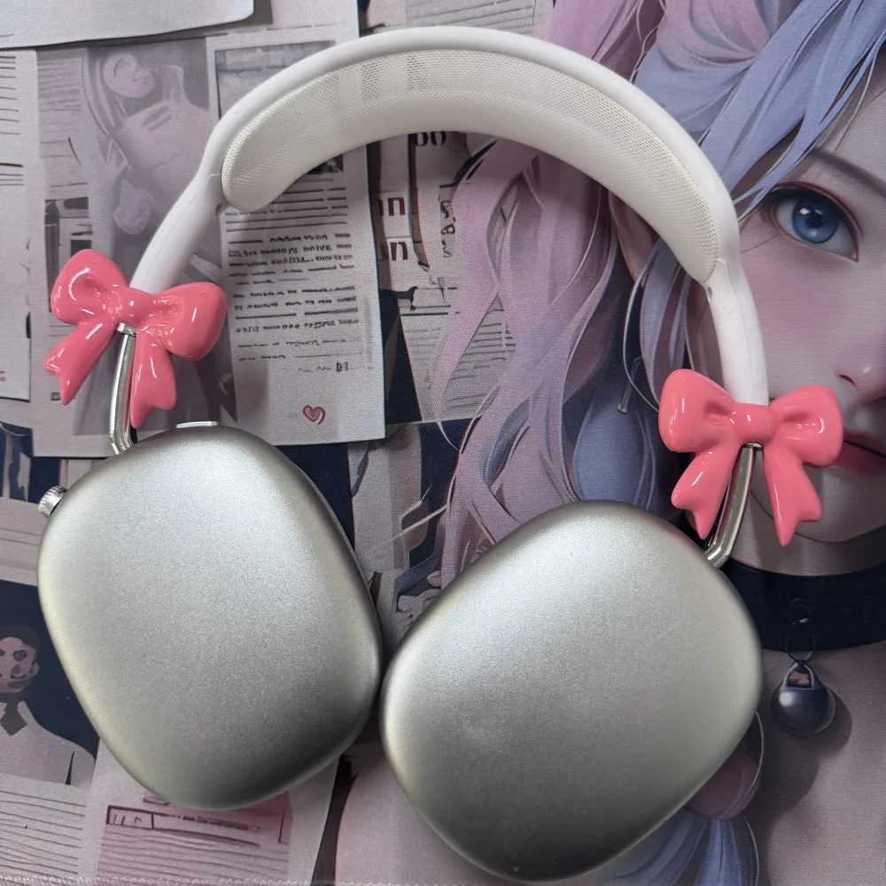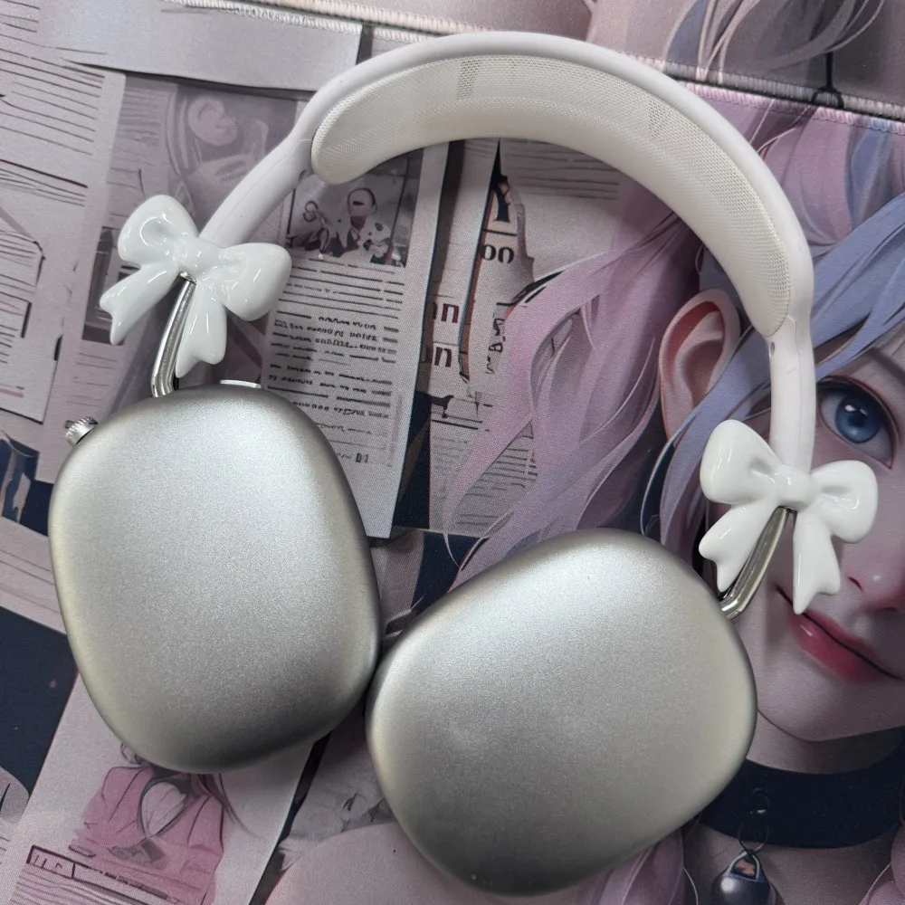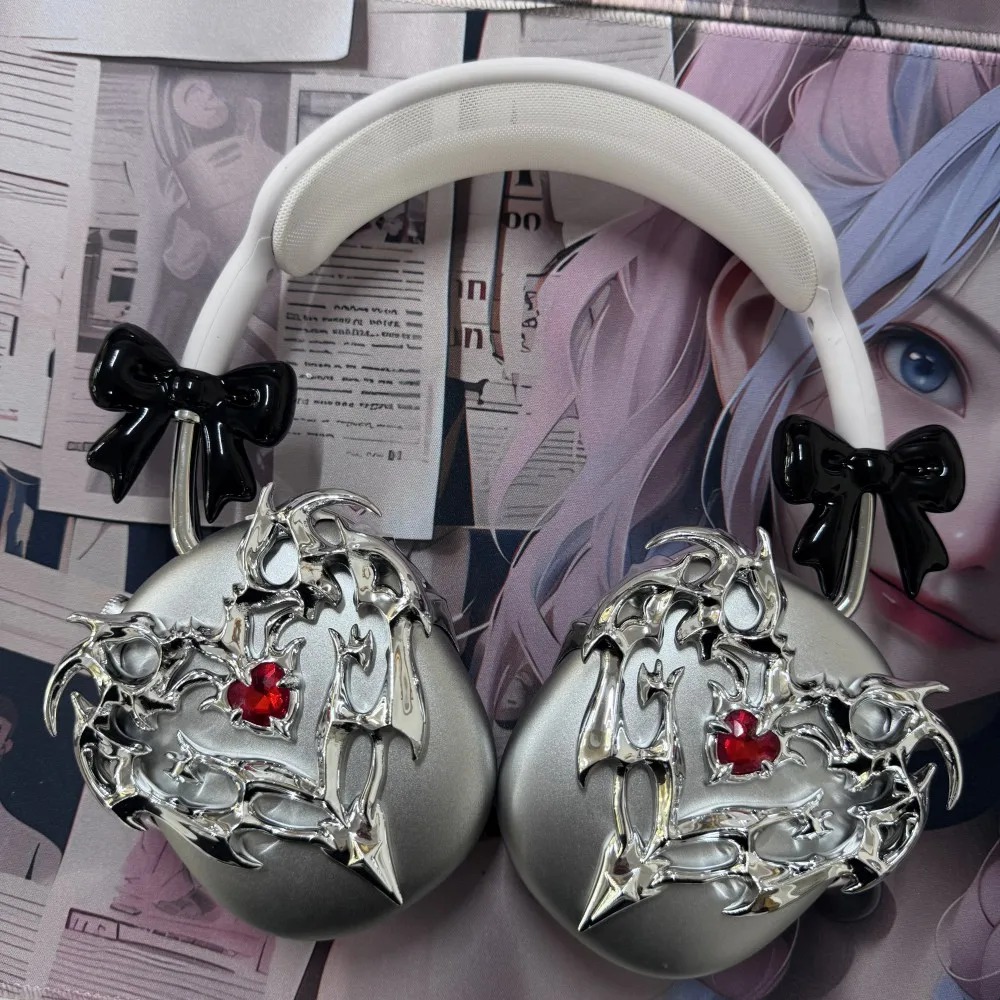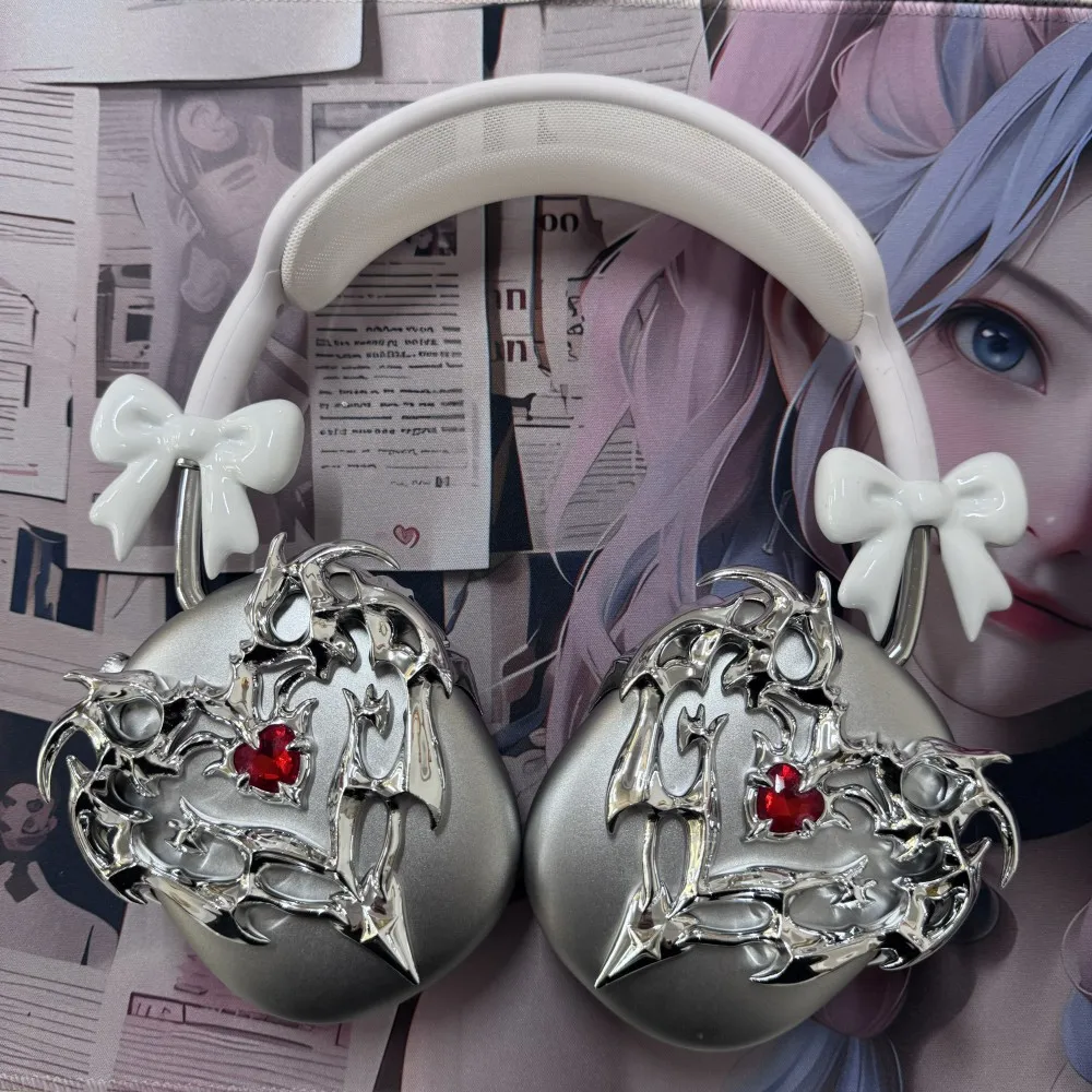Para Airpods Max funda Y2K amor cristal arco resina plateada funda para auriculares decoración Airpods Max accesorio accesorios para auriculares