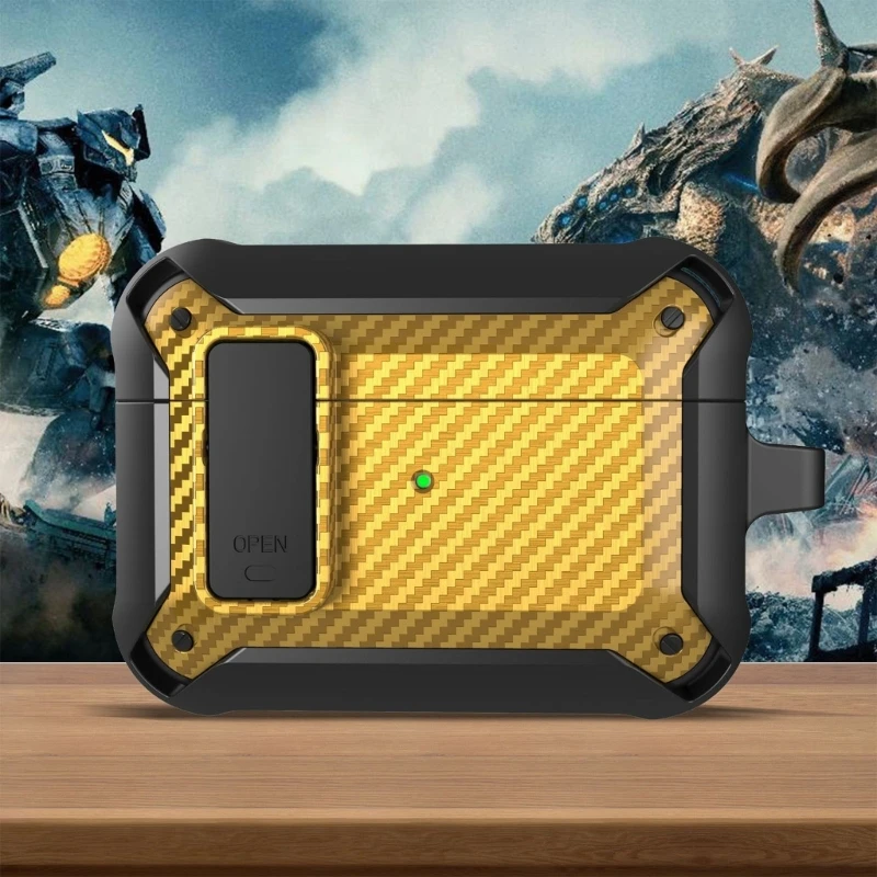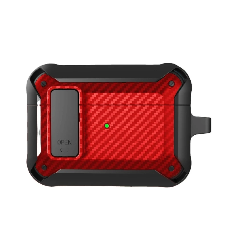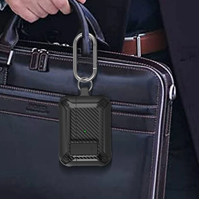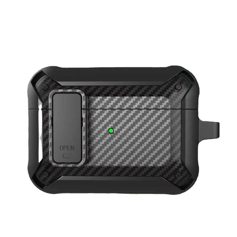 Material compacto de fibra de carbono con amortiguador de bordes mejorado, esta armadura fresca protegerá su airpod-pro 2 de caídas o arañazos. El diseño elegante transformará tus Airpods-Pro 2.