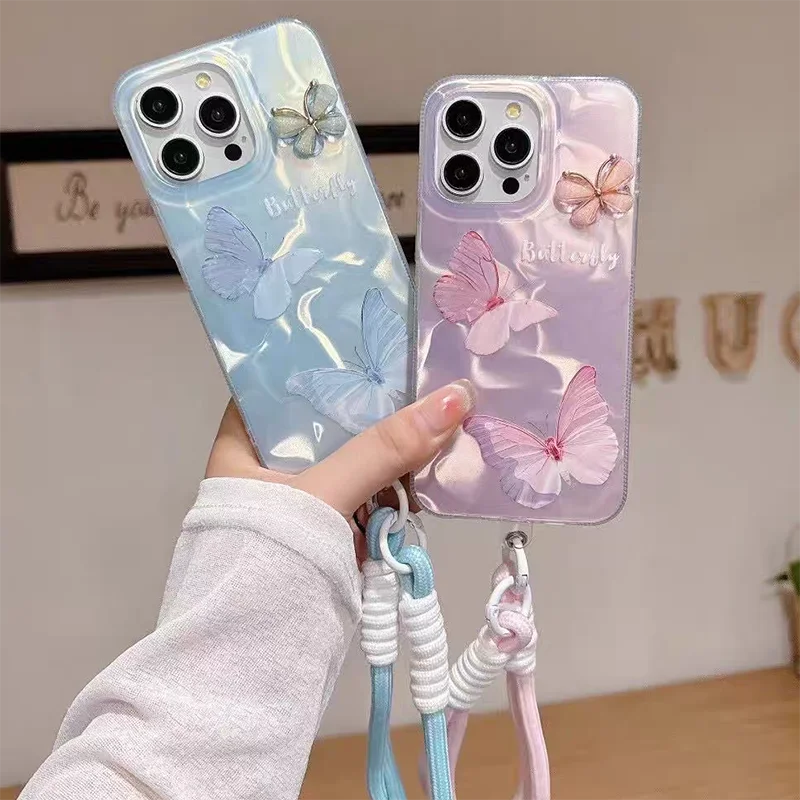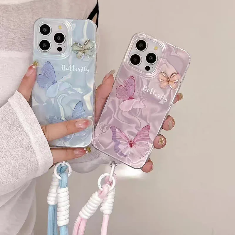 Comprar Funda con alas de mariposa 3D para Honor X6C 400 Lite X8C X9C Smart X7C 5G X6A X6B Plus Magic 7 Lite 90 funda de teléfono con cordón para niña