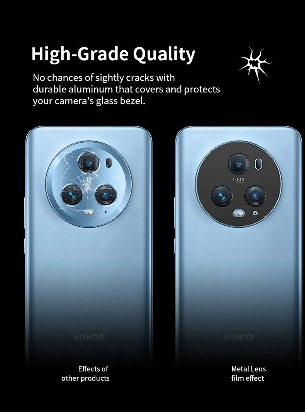 Funda de aleación de aluminio para cámara trasera para Honor Magic5 Pro 5G Honer Honar Magic 5 5Pro Magic5Pro 2023, película de cubierta de anillo de lente a prueba de golpes
