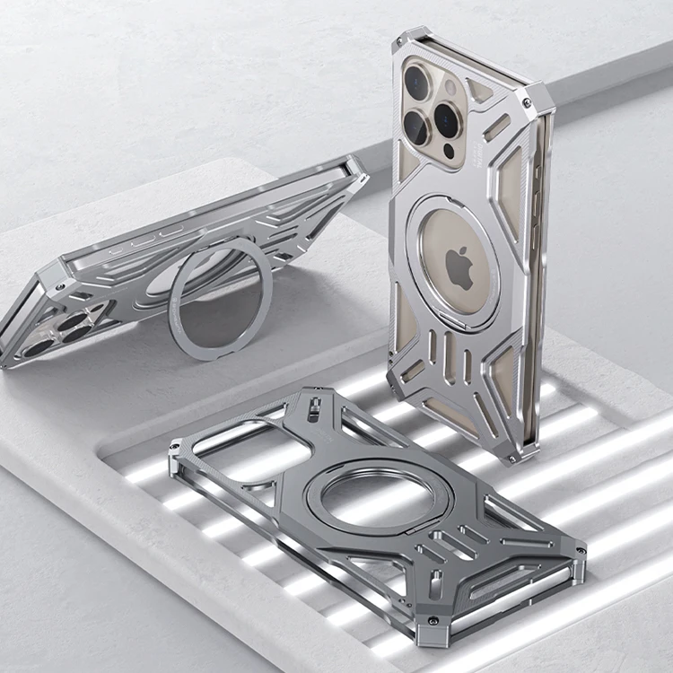 Funda de aleación de aluminio para iPhone 16, 15, 14, 13 Pro Max, soporte magnético para Magsafe, carcasa hueca sin bordes a prueba de golpes