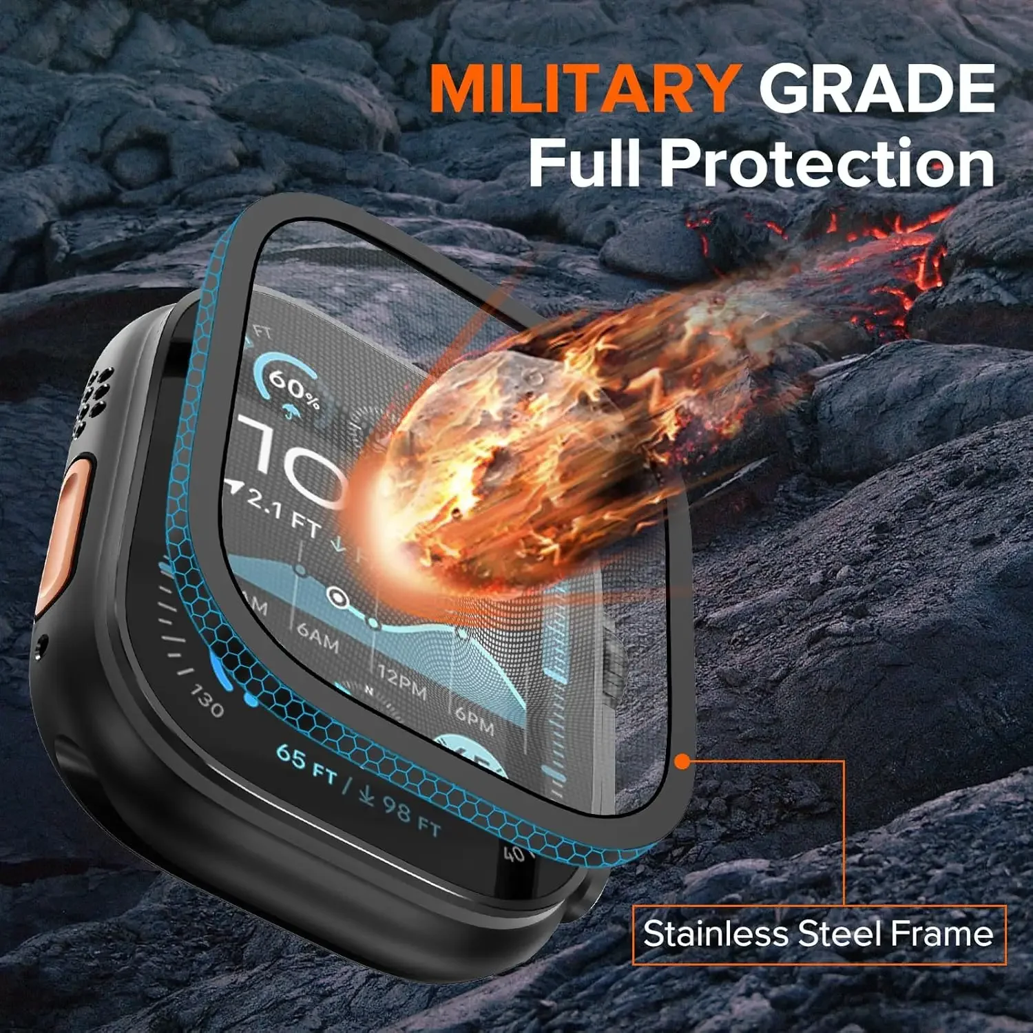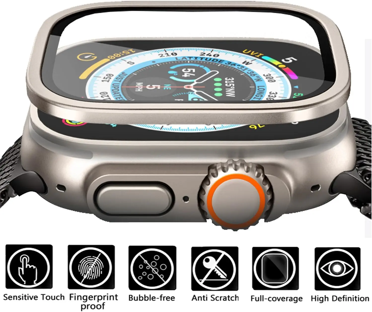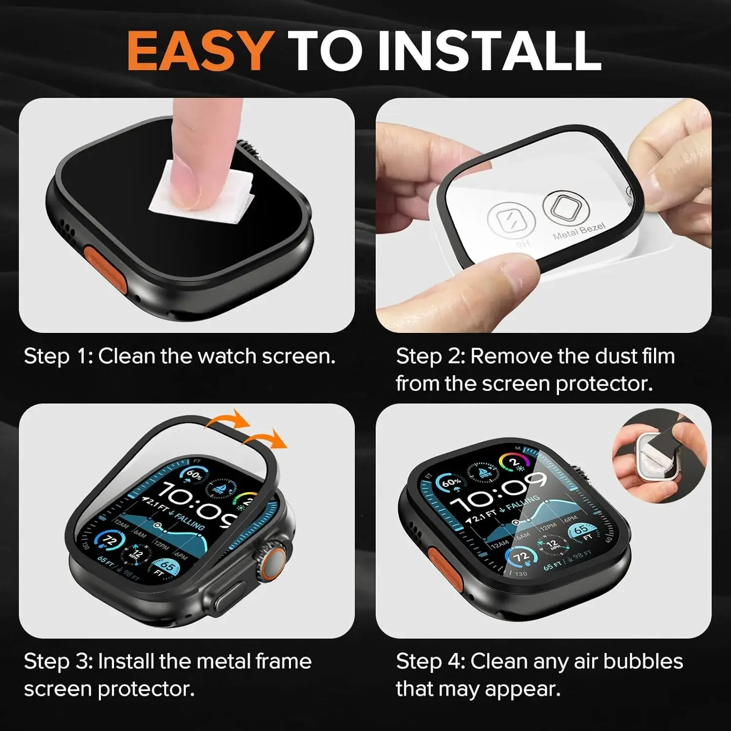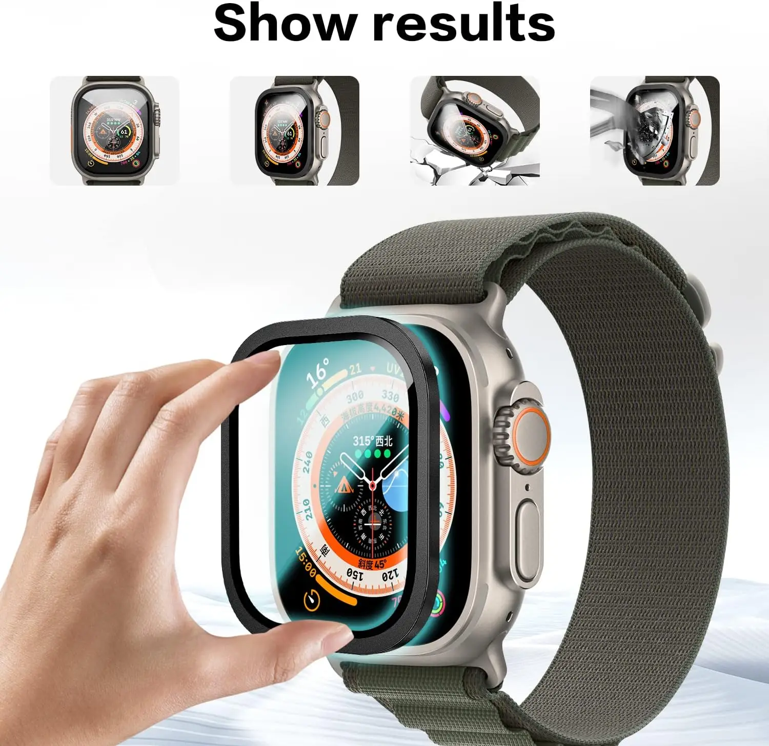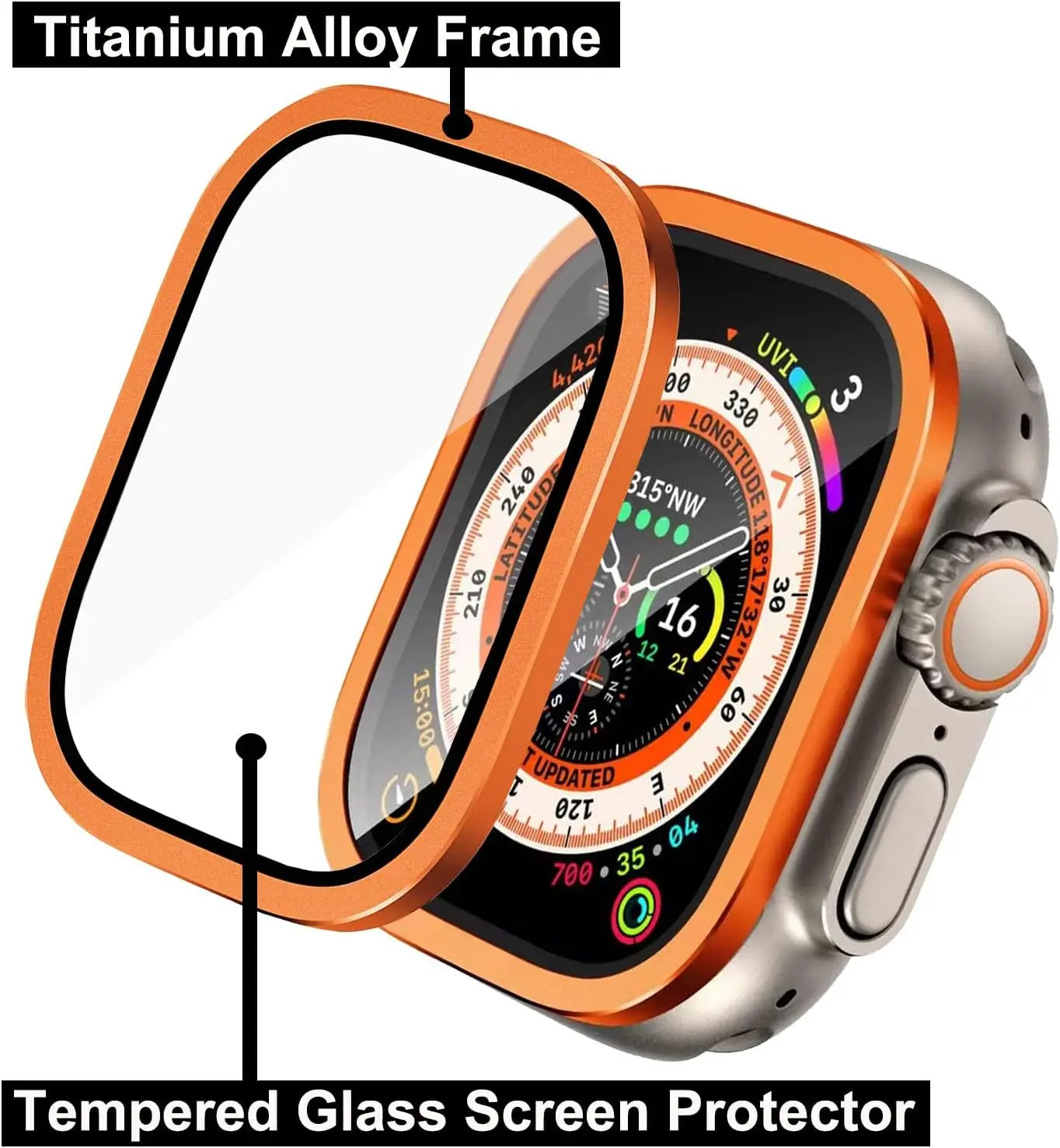 Funda de aleación de aluminio + vidrio templado para Apple Watch Ultra 3, Protector de pantalla antiarañazos de 49mm para iWatch Ultra 1, 2, 3, película protectora