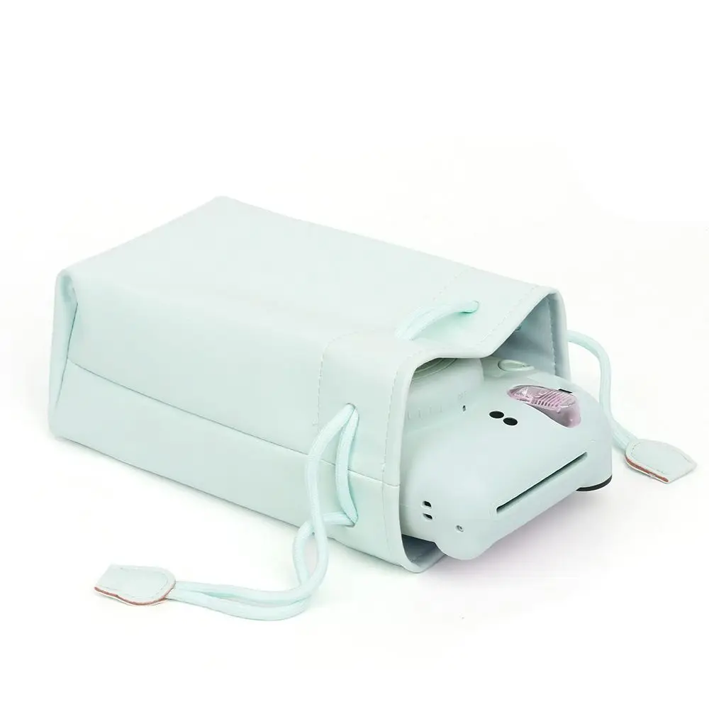 Estuche único de diseño con cordón para cámara, impermeable, antiestático, a prueba de polvo y a prueba de golpes. El tamaño compacto y los materiales suaves proporcionan un mejor almacenamiento para su cámara y accesorios. Esta bolsa portátil para cámara fue hecha de material de cuero PU ultra suave, lo que la hace extremadamente cómoda al tacto. Puede almacenar su cámara, lentes y otros accesorios, ahorrar espacio y es cómodo de llevar. No ocupa mucho espacio, puede ponerlo en su mochila o caja de barra de tiro cuando viaje. ¡El mejor regalo para tu familia y amigos que aman la fotografía! Especificaciones: Material: cuero PU Peso: 48,5G Tamaño: 19,5*11,5*7,5 cm El paquete incluye: 1 bolsa de almacenamiento de cámara instantánea