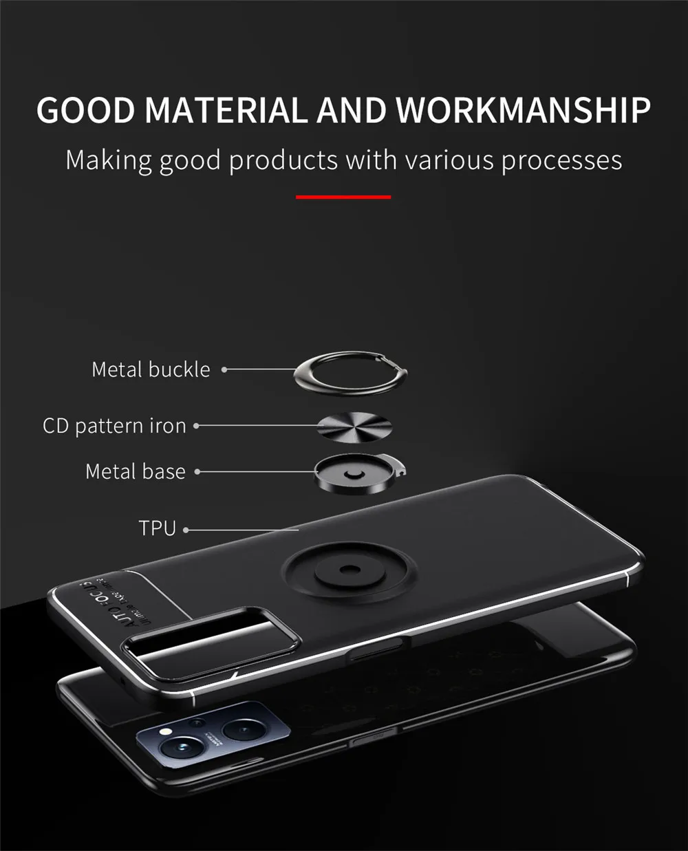 * Soporte de hebilla de anillo Invisible: material de aleación de Zinc, proceso de galvanoplastia, textura de metal lujosa. Dos modos de rotación (150 grados y 360 grados), perfectos para fijar y evitar caídas, ya sea en el dedo o en la mesa.