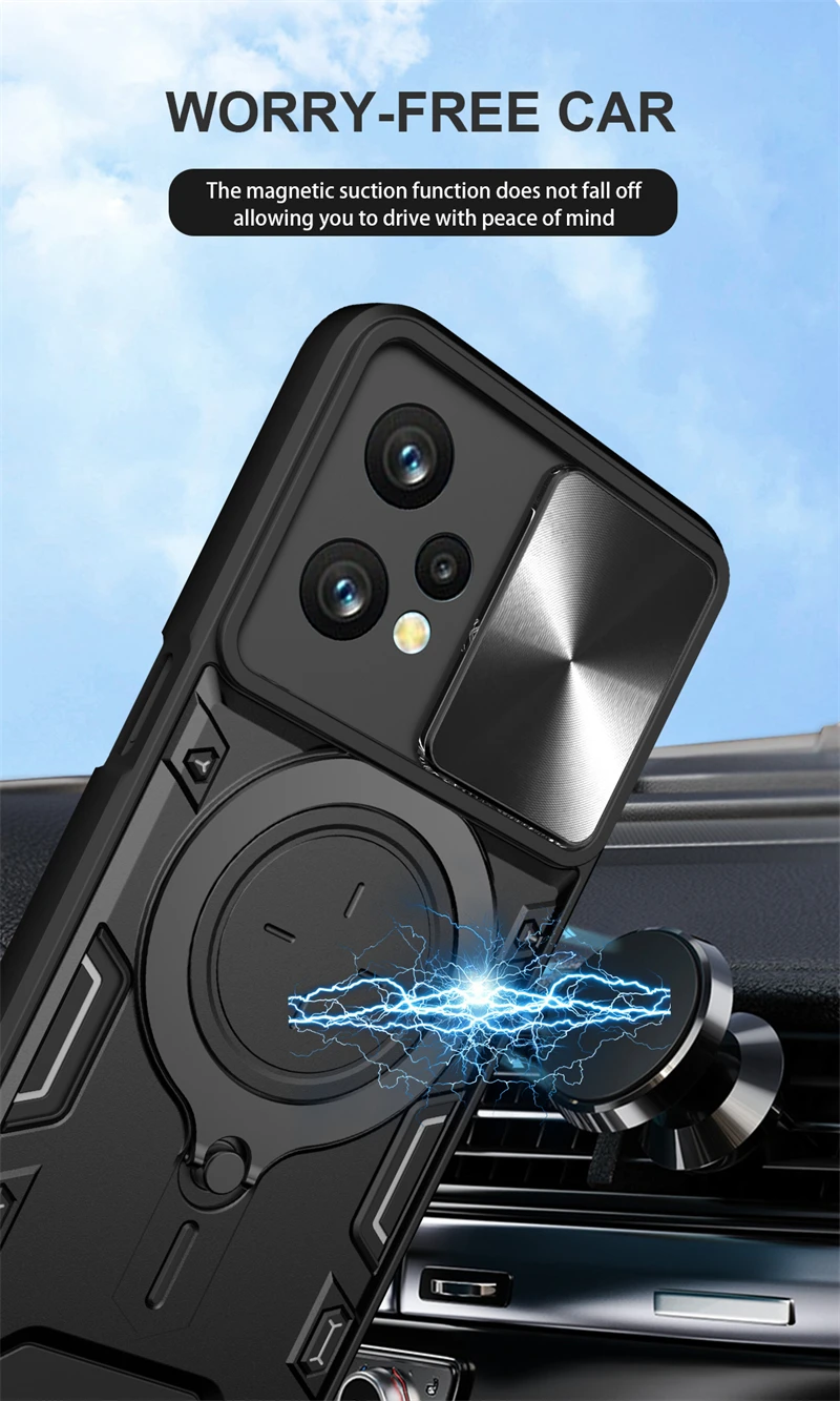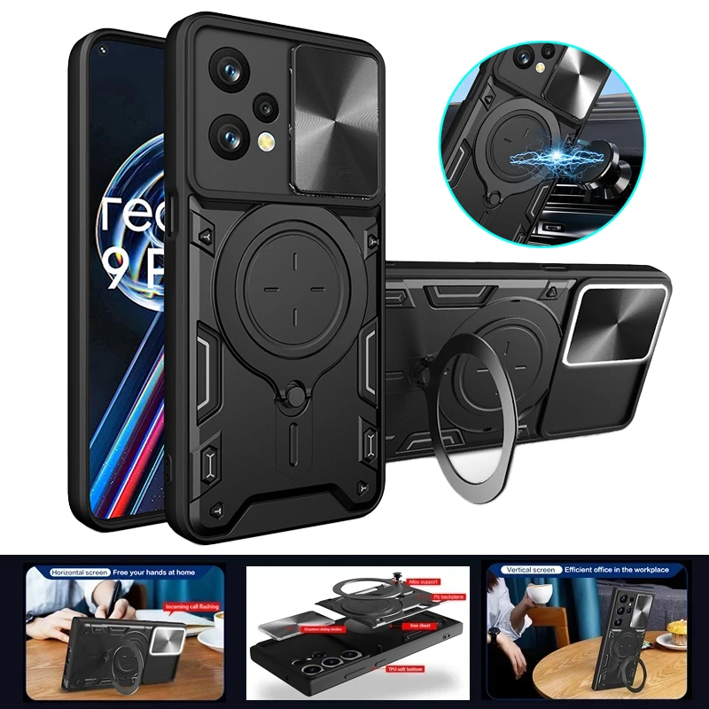 Comprar Funda con anillo magnético para móvil, carcasa trasera con soporte para cámara deslizante, a prueba de golpes, para Realme 9 Pro 5G, OPPO Realme9 Realme V25 5G