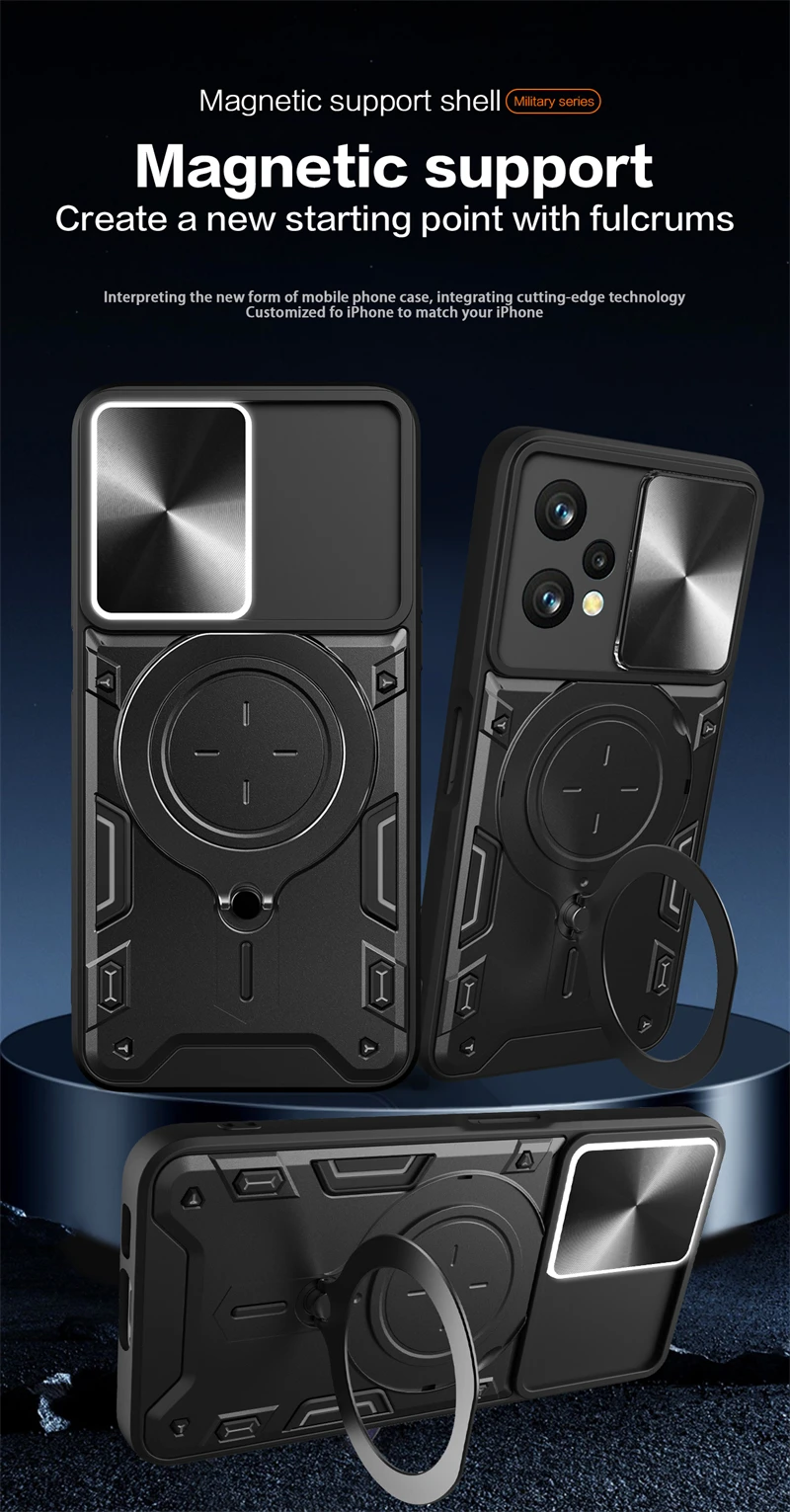 Funda con anillo magnético para móvil, carcasa trasera con soporte para cámara deslizante, a prueba de golpes, para Realme 9 Pro 5G, OPPO Realme9 Realme V25 5G