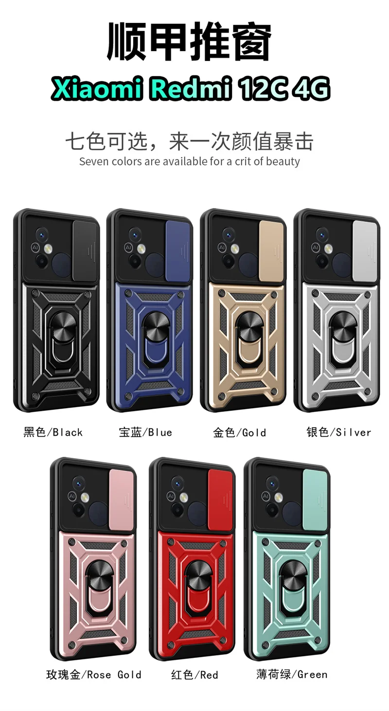 Comprar Funda con anillo magnético para Xiaomi Redmi 12C, carcasa protectora con soporte para lente de cámara 4G