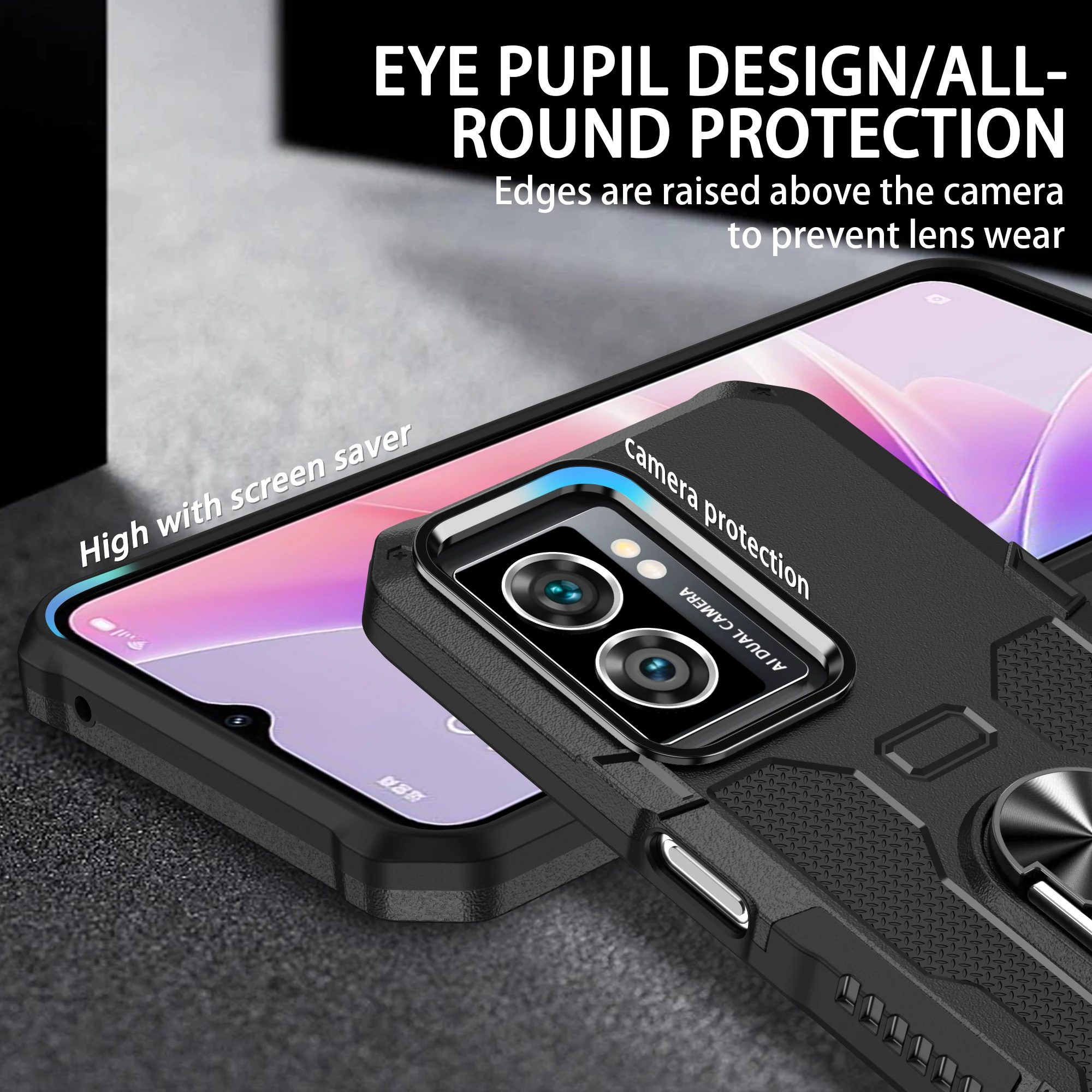 Funda con anillo de soporte magnético para OPPO, cubierta trasera de armadura a prueba de golpes, Reno 6Lite 7, A77S, A74, A57S, A55, A54, A53, 4G, 5G, F19, F9