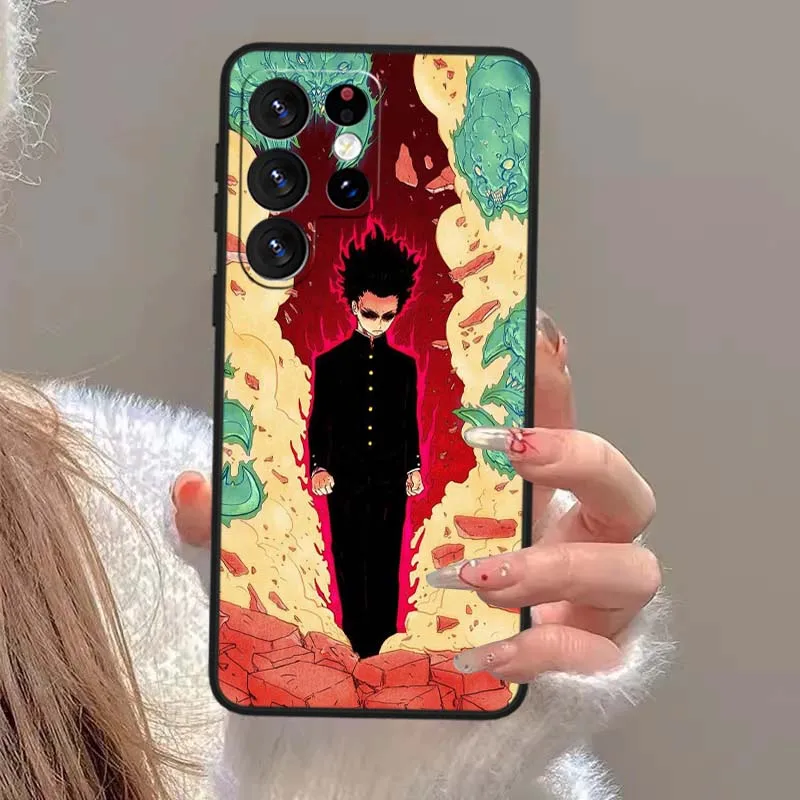 Funda de Anime Mob Psycho 100 para Samsung Galaxy S25 S24 S23 S22 S21 S20 S10 S9 S8 FE Lite Ultra Plus 5G funda de teléfono negra