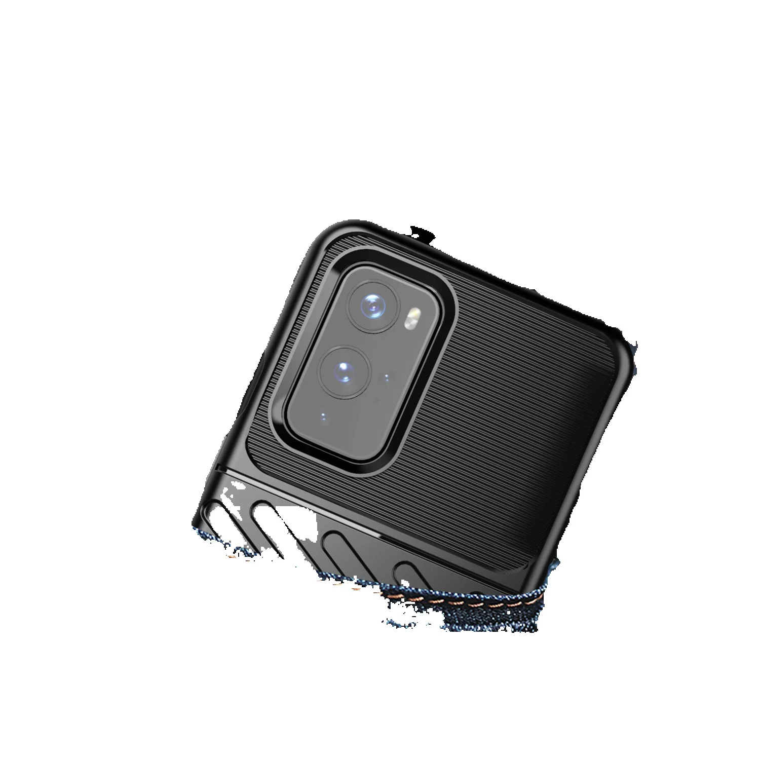 Tecnología 3D para crear la textura y el patrón de fibra de carbono únicos con el material TPU (poliuretano termoplástico) más utilizado.