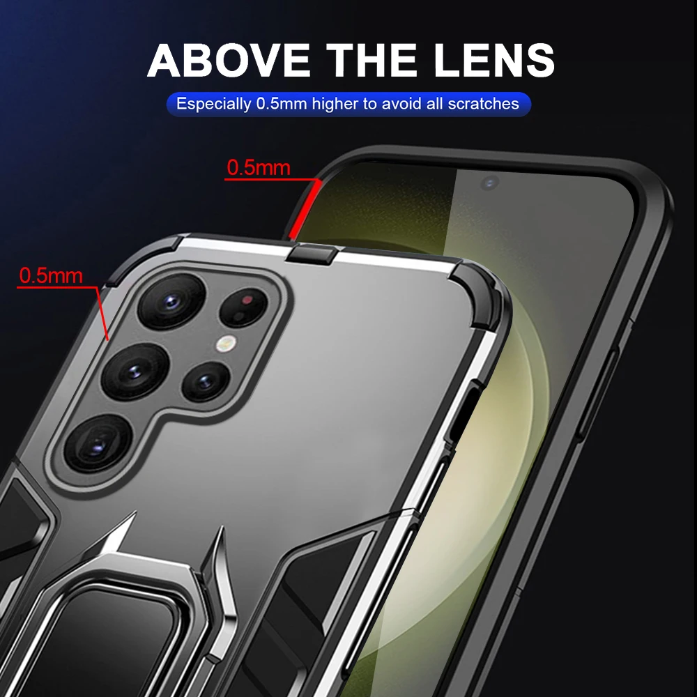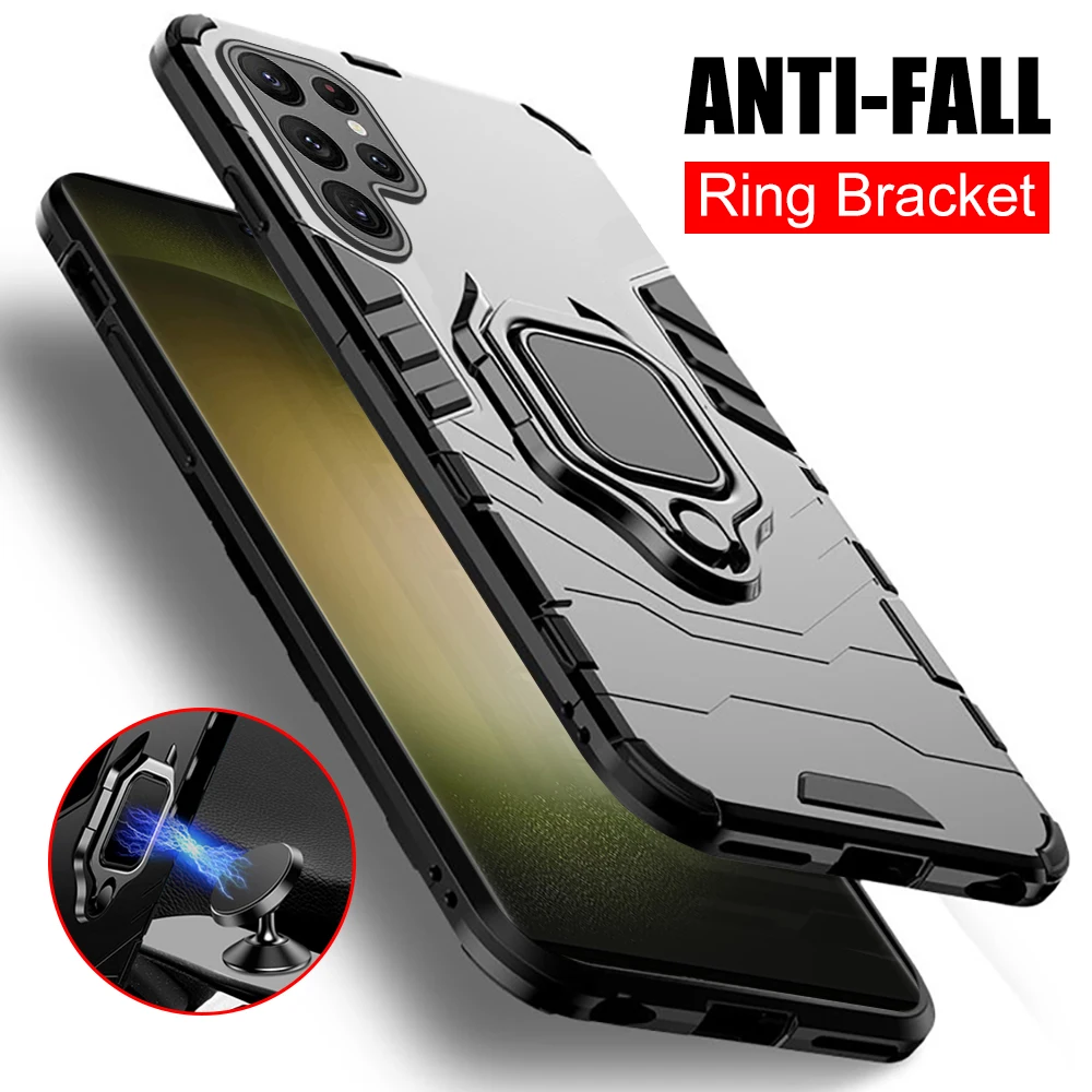 Funda anticaída Brakcet con anillo de Metal para Samsung Galaxy S24 Ultra, funda trasera con soporte magnético para coche, Coque Galax S24 + S 24 Plus S24Ultra