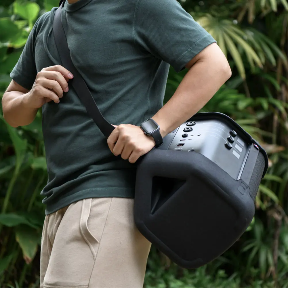 4. Portabilidad cómoda:Equipada con una correa para el hombro ajustable y una hombrera acolchada, esta funda para altavoz reduce eficazmente la tensión en los hombros.Ofrece opciones de transporte versátiles, lo que permite un fácil transporte en la mano o al hombro.