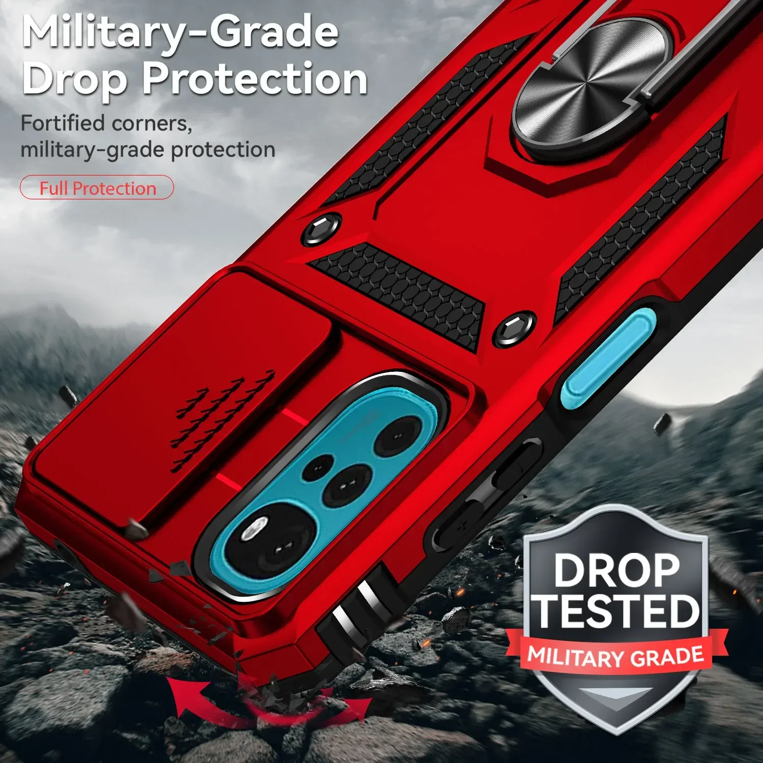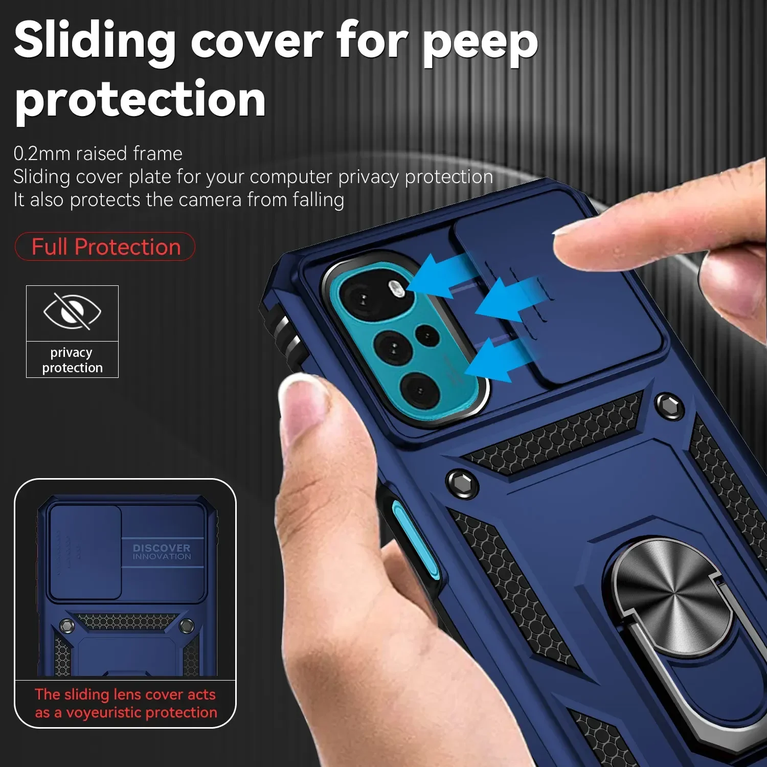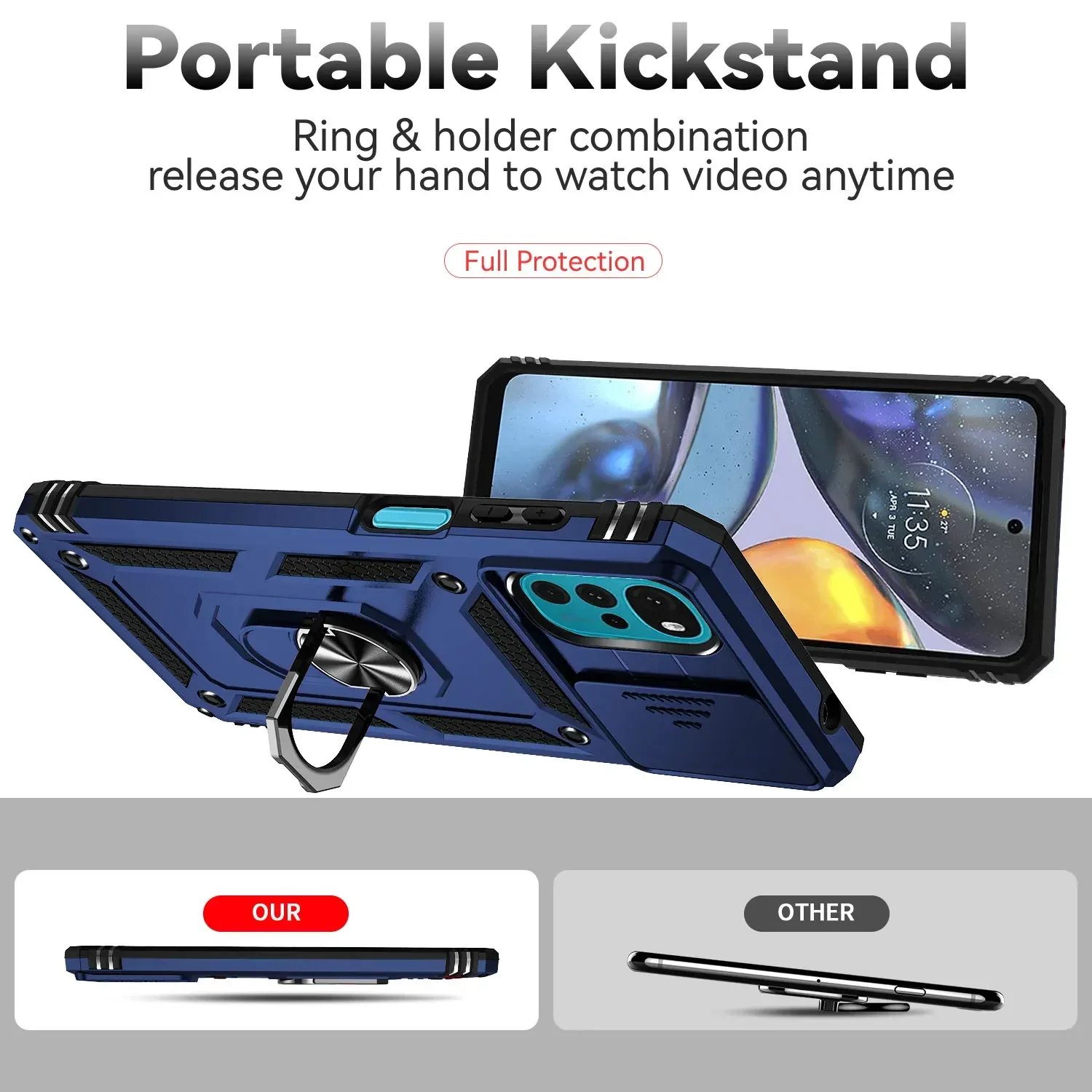Funda de armadura a prueba de golpes para Motorola Moto G22 G 5G 2022 G32 G52 G82 G62 5G, soporte de anillo, ventana deslizante, protección de lente, cubierta de teléfono