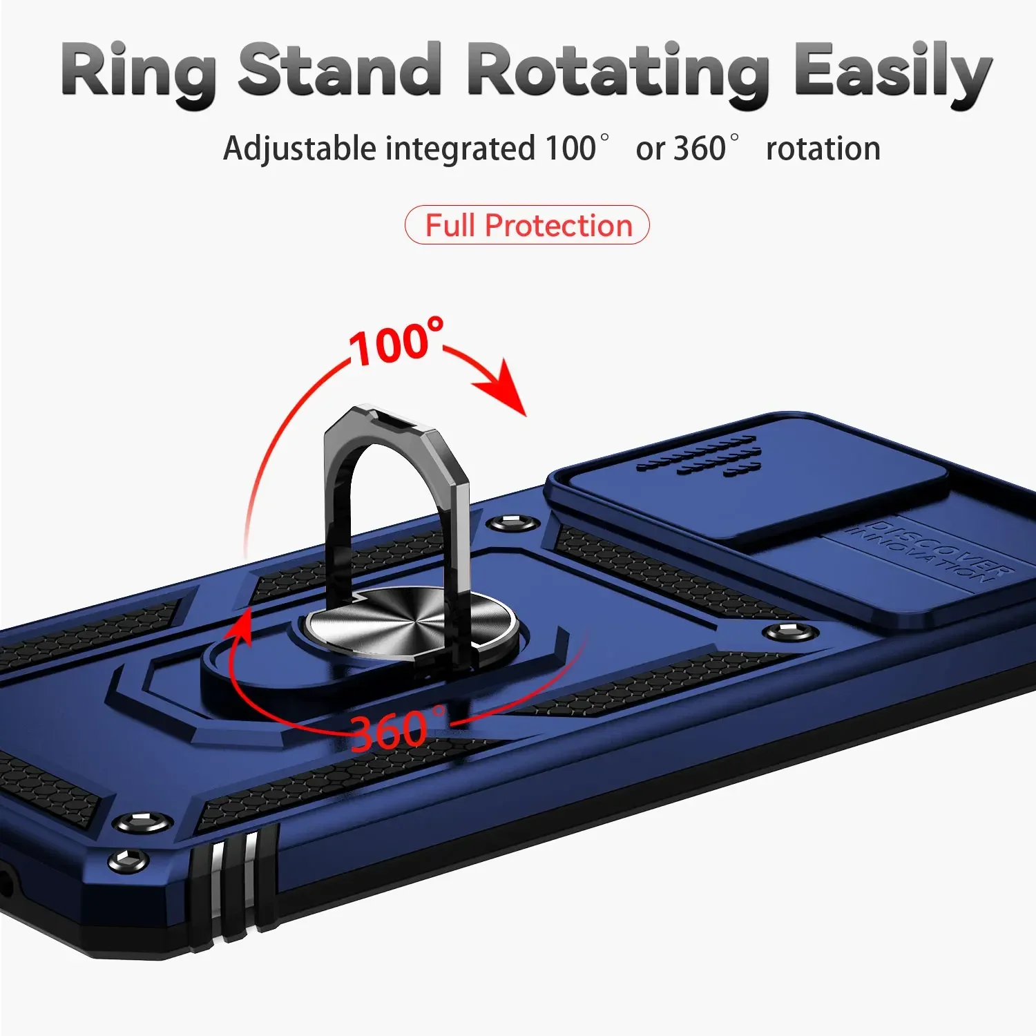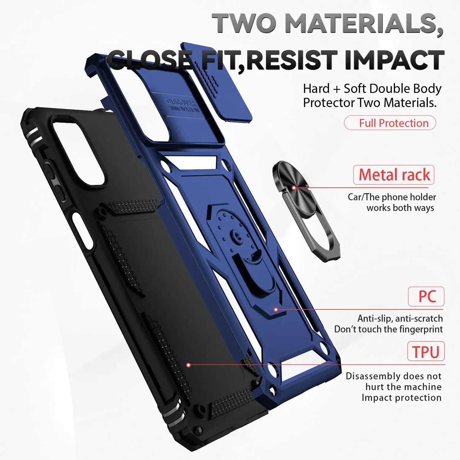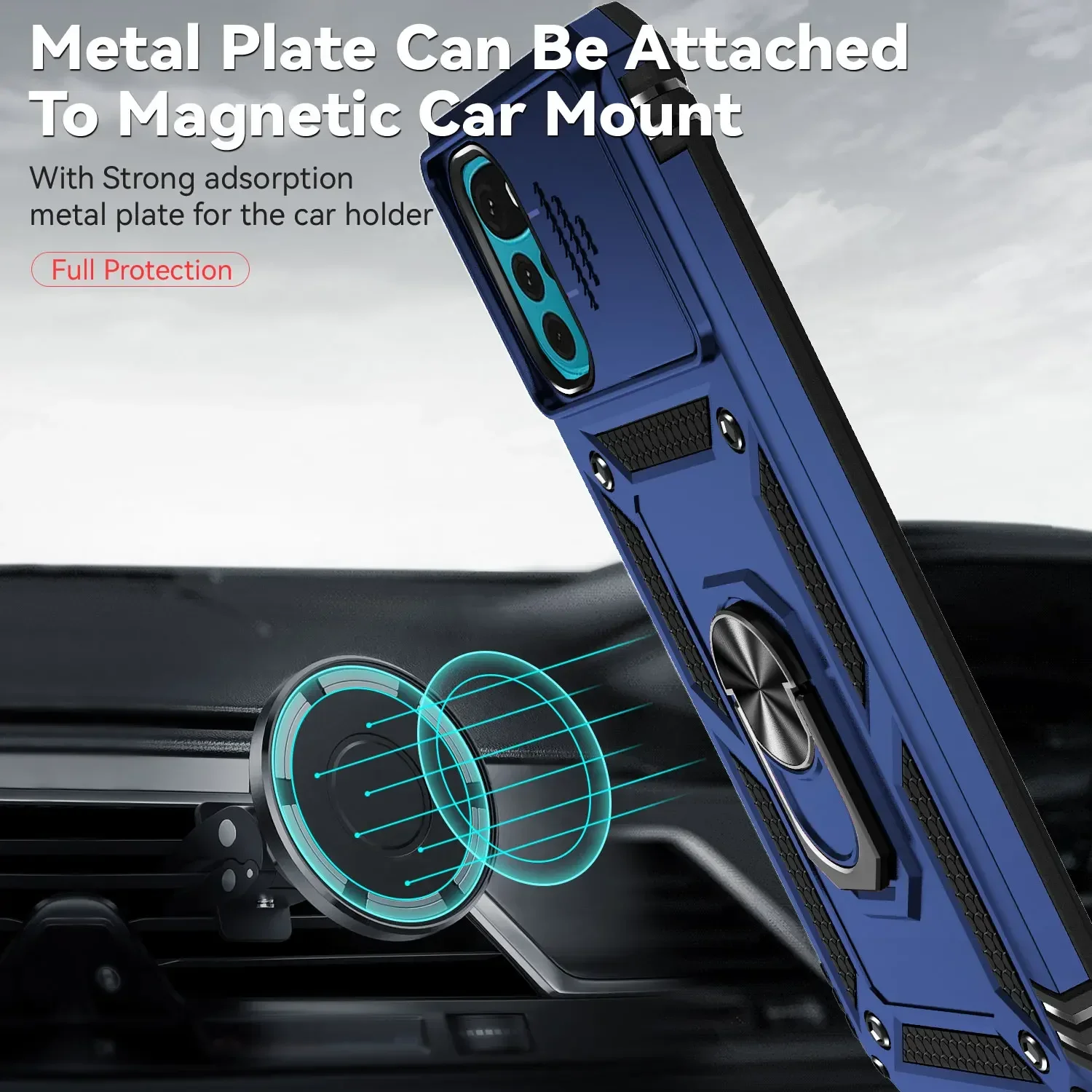 Funda de armadura a prueba de golpes para Motorola Moto G22 G 5G 2022 G32 G52 G82 G62 5G, soporte de anillo, ventana deslizante, protección de lente, cubierta de teléfono