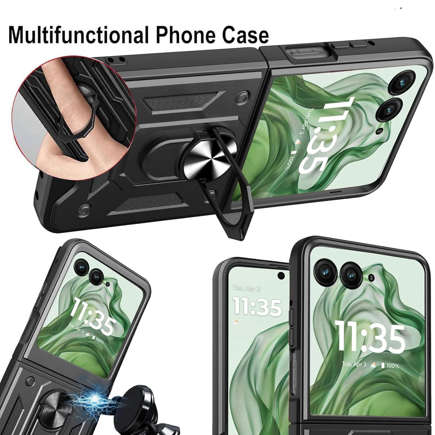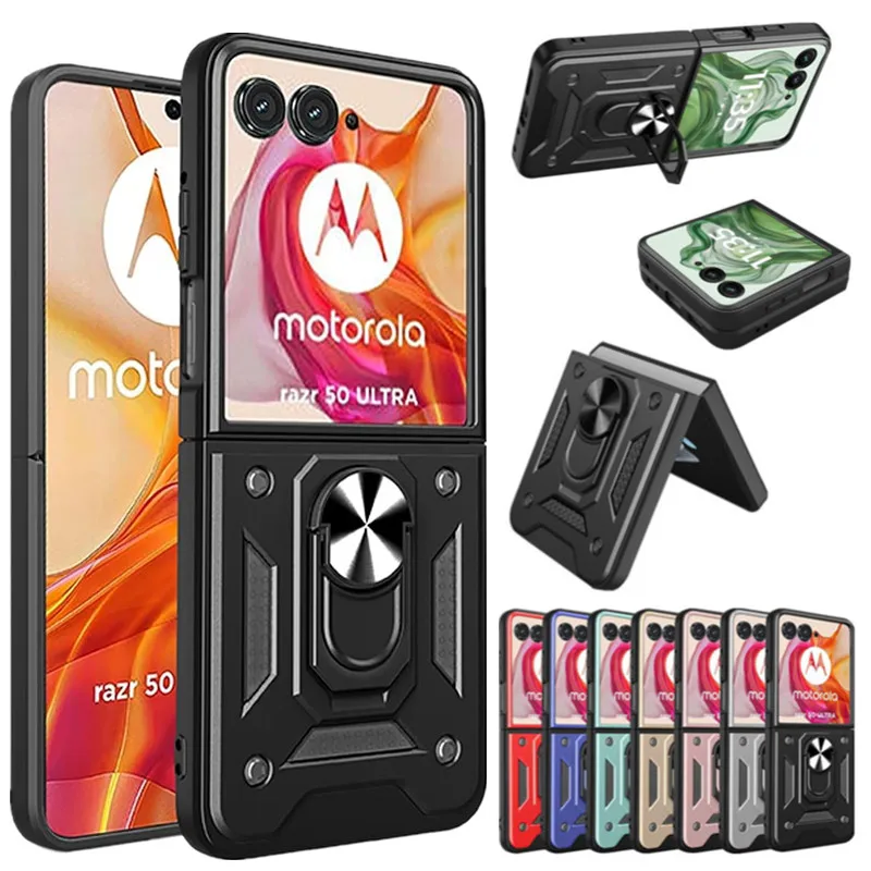 Comprar Funda armadura a prueba de golpes para Motorola Razr 50 Ultra, funda para Moto Razr Plus 2024 con anillo, soporte magnético, Fundas