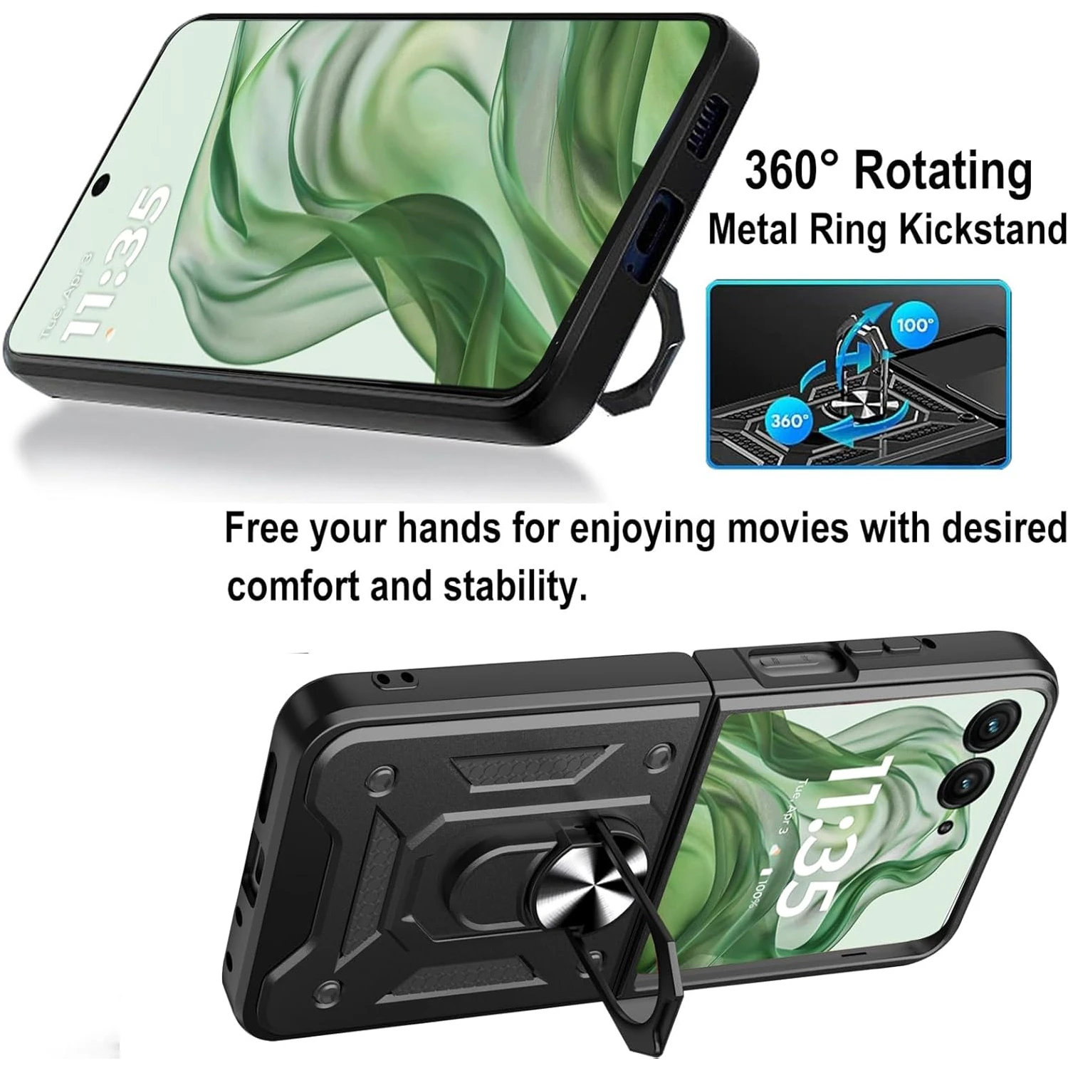 【Foldable Back Finger Ring】 it's made of aluminum alloy, it allows you have a better and safer grip on reaching more parts of screen. Provides you with multiple-viewing angles for watching video and movie as a kickstand