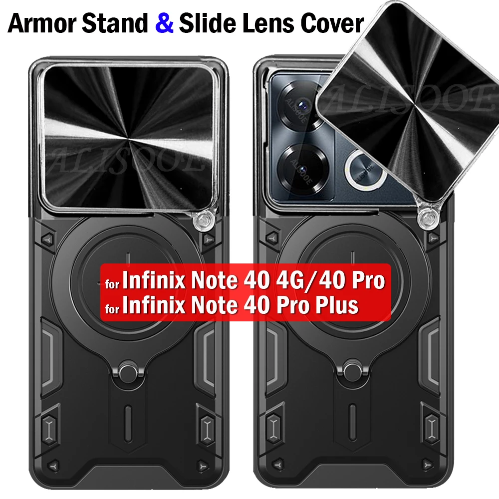 Funda de armadura para infinix Note 40, 4G, 40 Pro Plus, cubierta de cámara deslizante, soporte de anillo, Capa a prueba de golpes