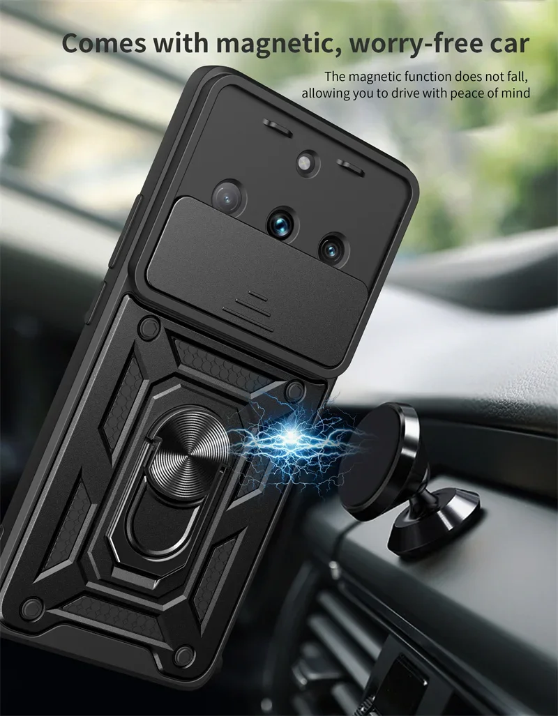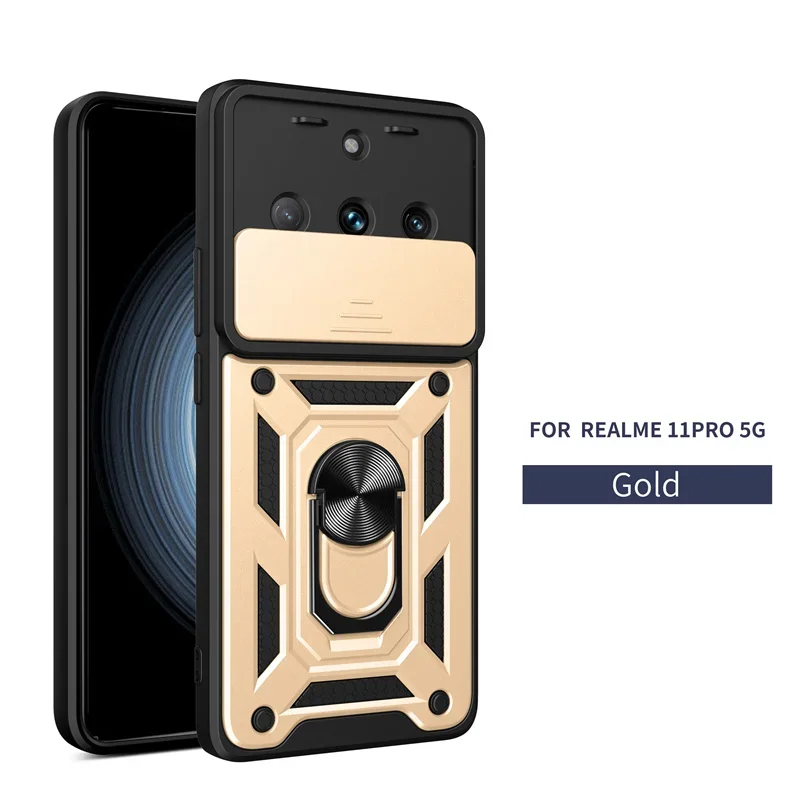 Comprar Funda armadura para OPPO Realme 11 Pro Plus, Funda magnética con soporte para coche, Funda con anillo para Realme 11 Pro 5G 11Pro + Funda protectora con lente deslizante