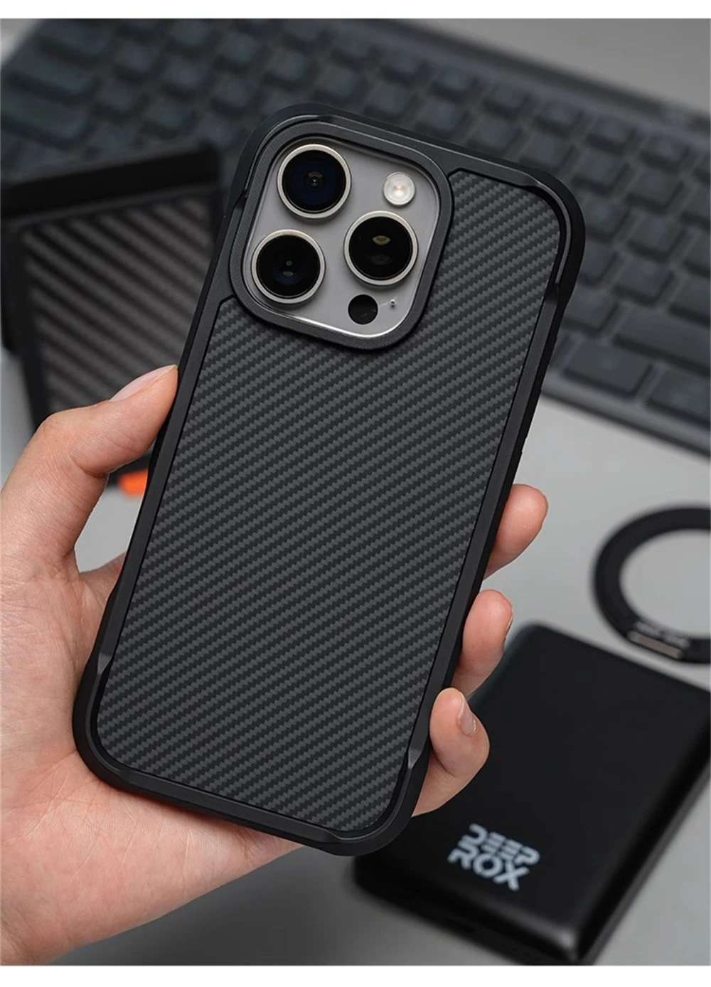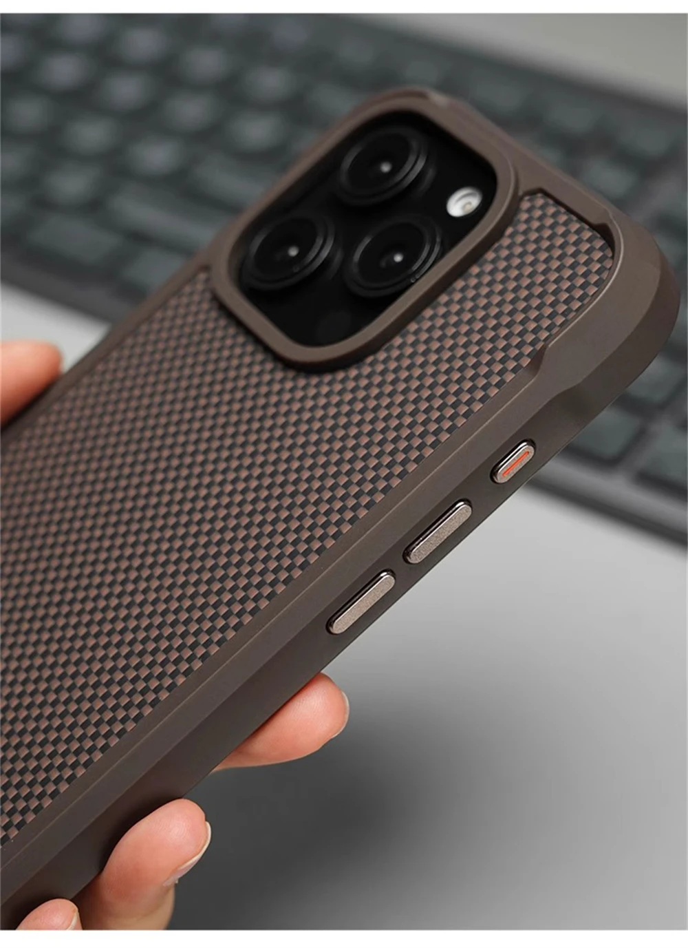 Funda de armadura a prueba de golpes con Panel trasero de textura de fibra de carbono de lujo para iPhone 16 Pro Max para cubierta de carga inalámbrica magnética Magsafe