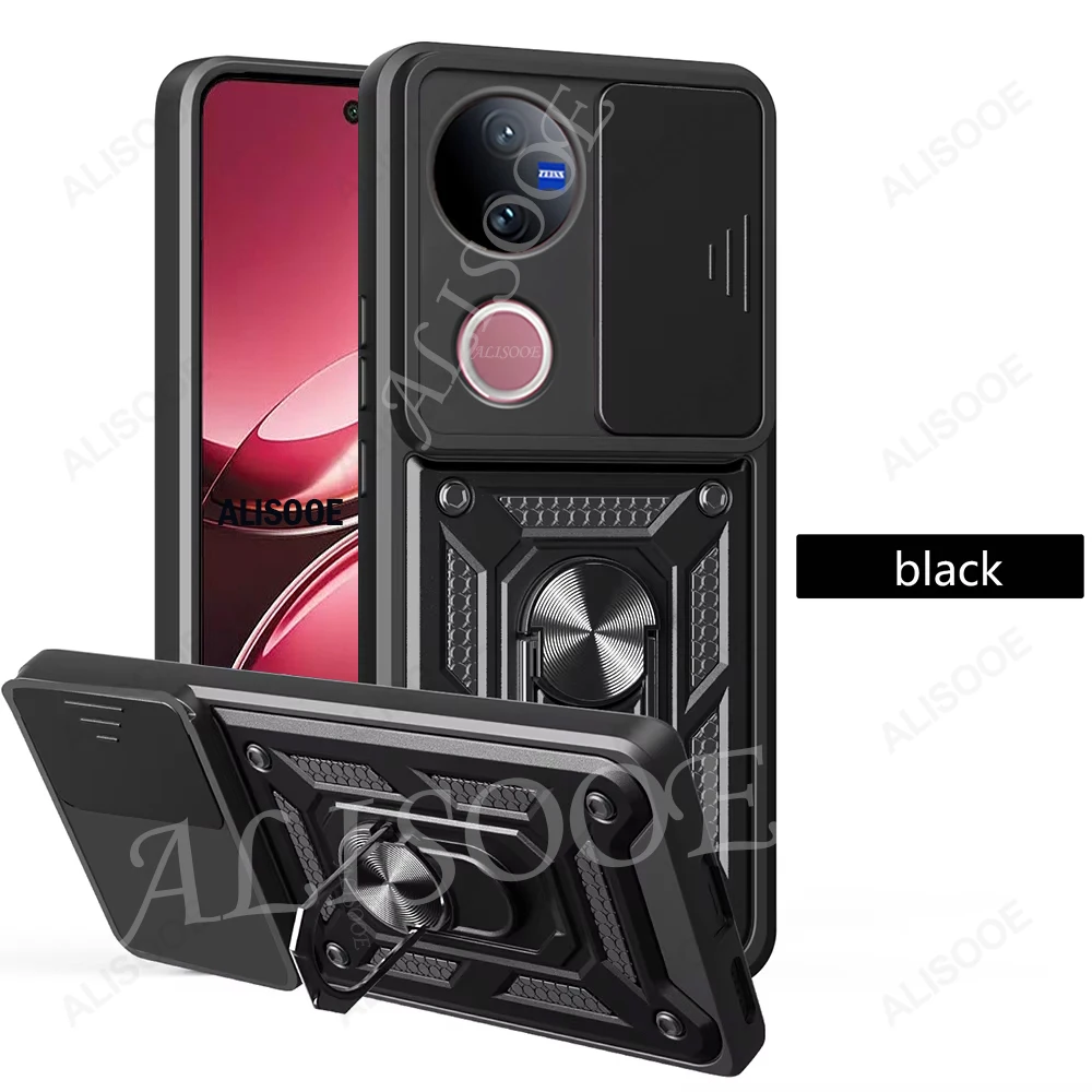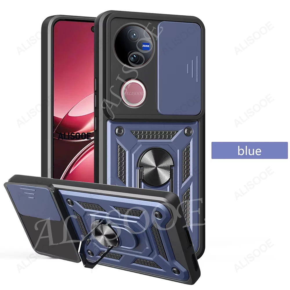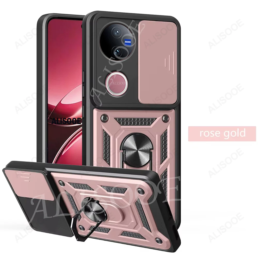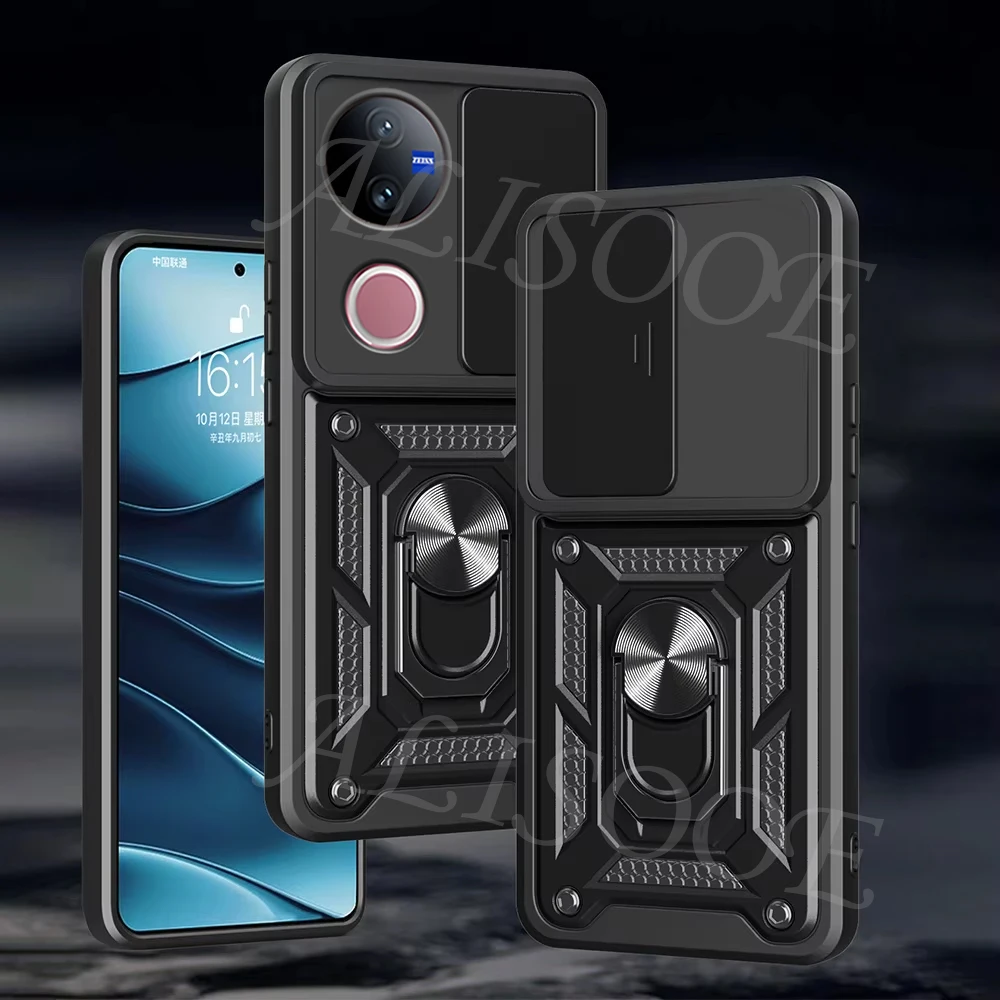 Comprar Funda de armadura con soporte de anillo para VIVO V50 5G, Funda deslizante para cámara, soporte magnético, Capa para VIVO V40 Lite V30 Pro V30E 5G