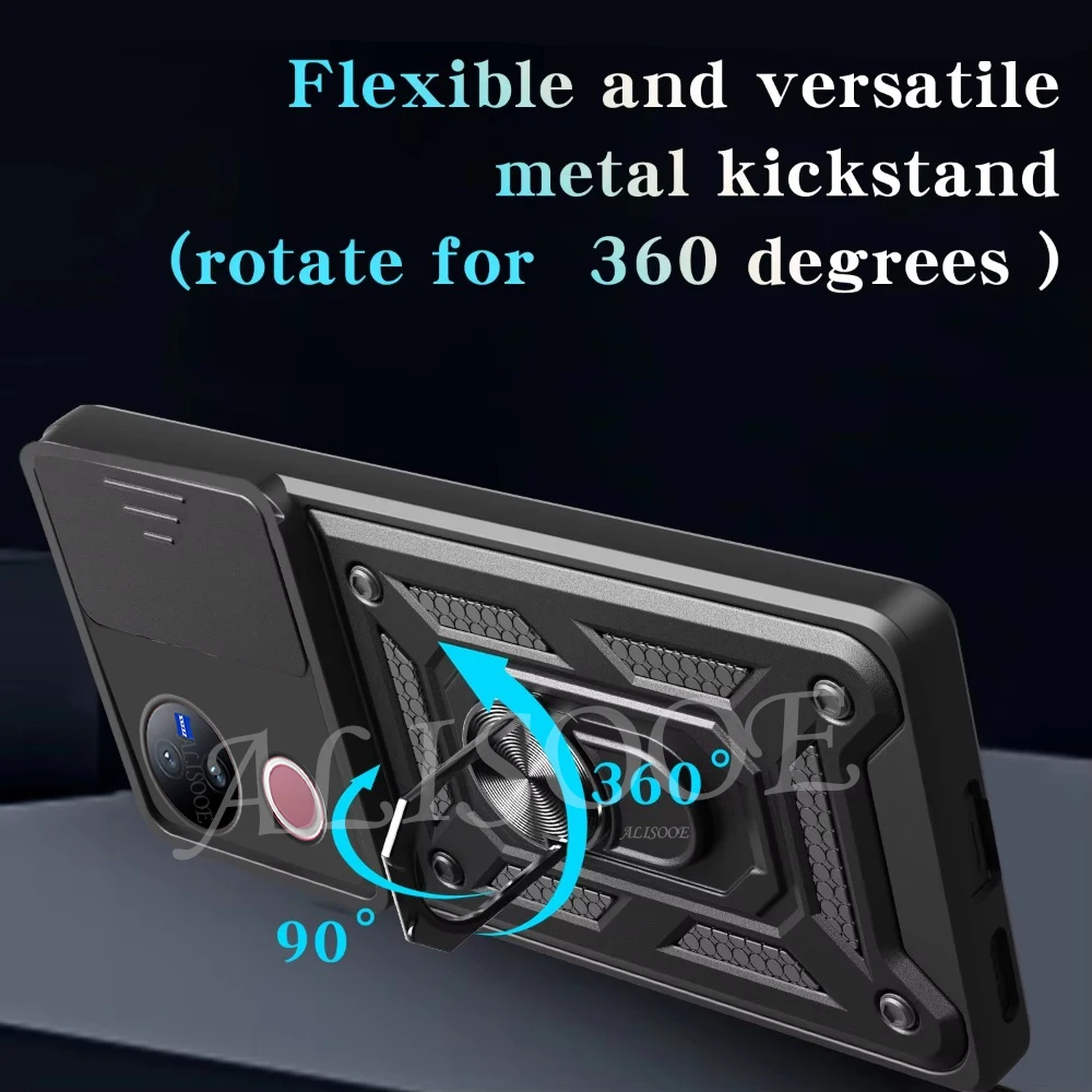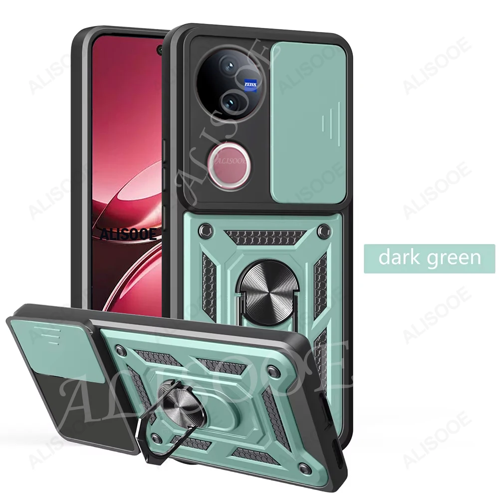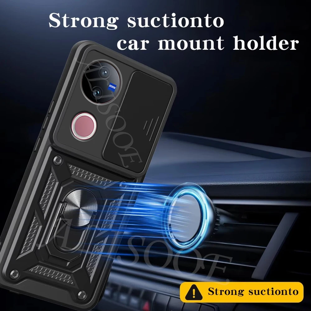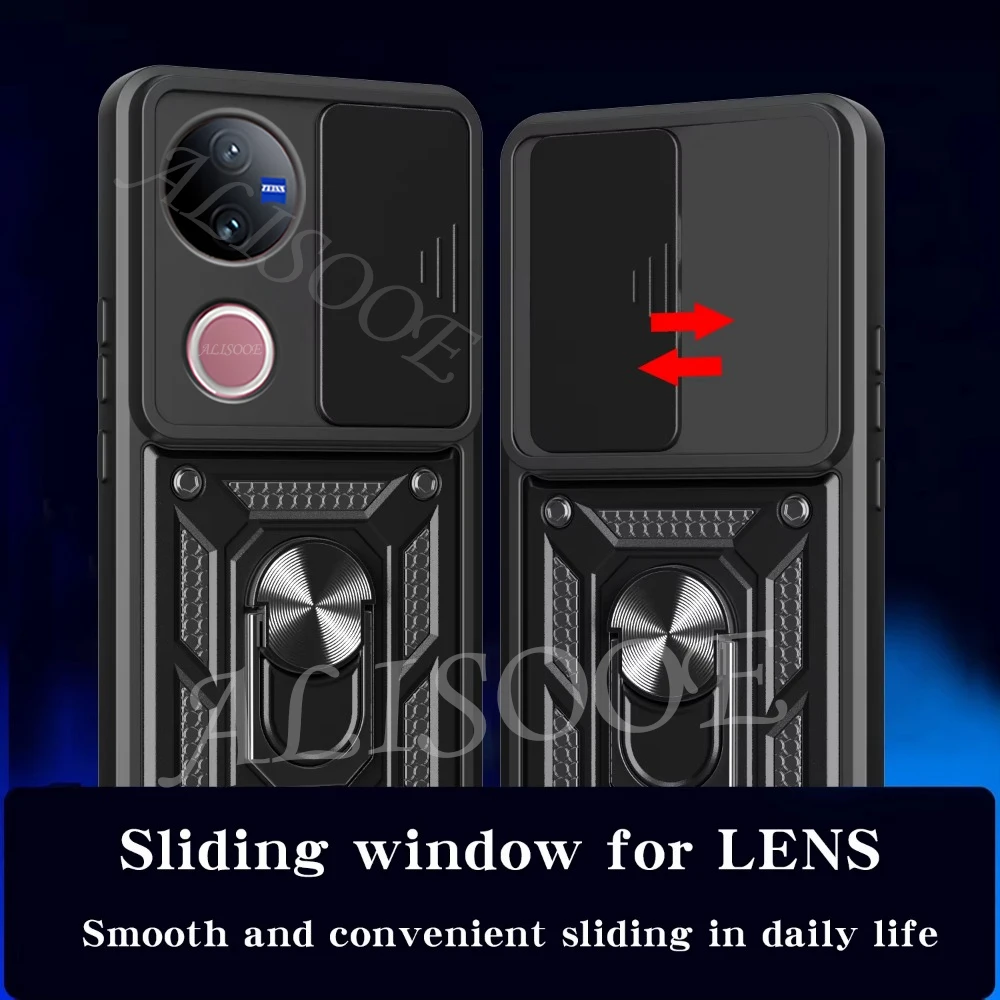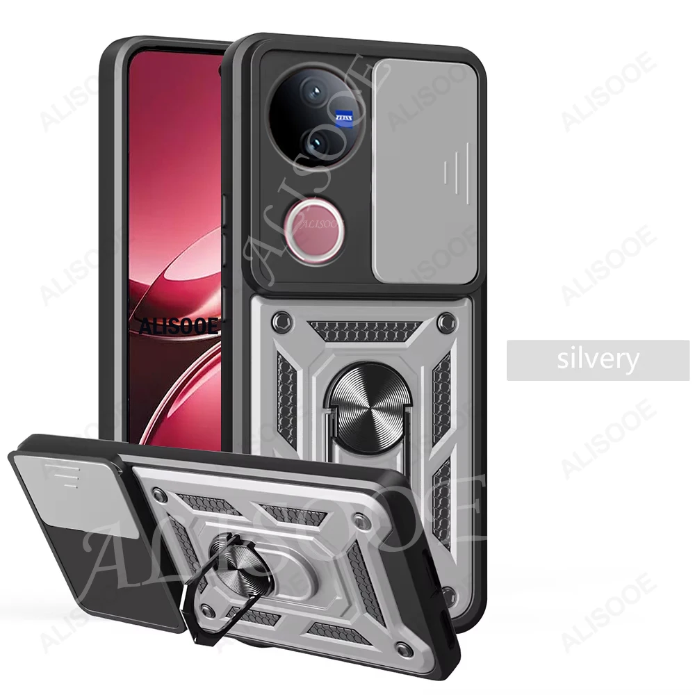 Comprar Funda de armadura con soporte de anillo para VIVO V50 5G, Funda deslizante para cámara, soporte magnético, Capa para VIVO V40 Lite V30 Pro V30E 5G