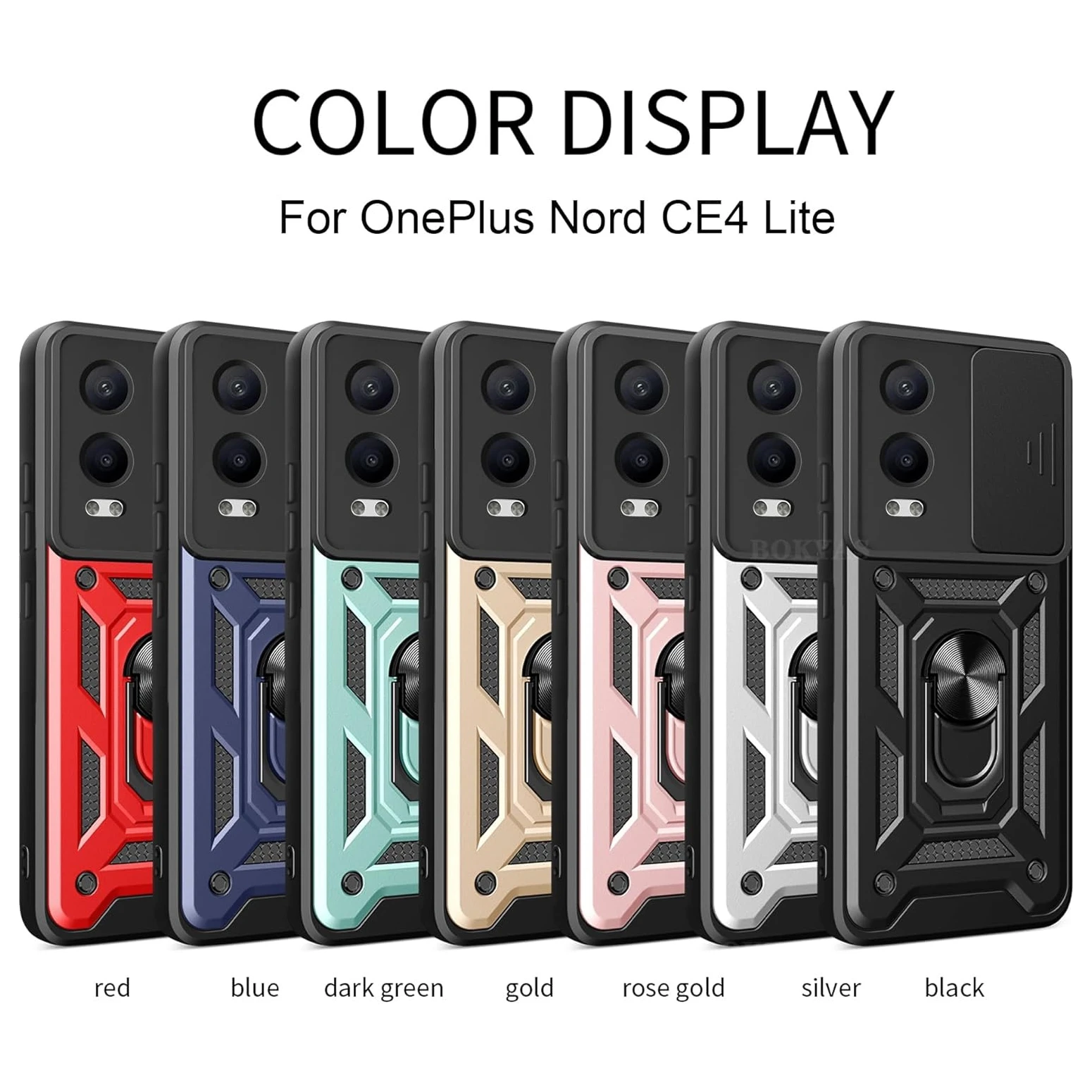 Comprar Funda armadura con soporte para OnePlus Nord CE 4 Lite 5G, funda con anillo de protección de lente, soporte magnético, Fundas